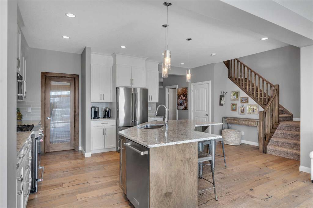 Welcome Home! This 2 story residence has so much to offer and features: 3,400+sq ft fully finished space w/ 5 bed, 3.5 bath + bonus | backing walking path + steps to rubber floor park | upgraded interior specifications | massive rear deck + landscaped | and so much more! All located in the developed Airdrie community 'Ravenswood' - with schools, amenities, access to major highways, green spaces & more making it perfect for growing families. Stepping inside you'll immediately notice the pride of ownership i...