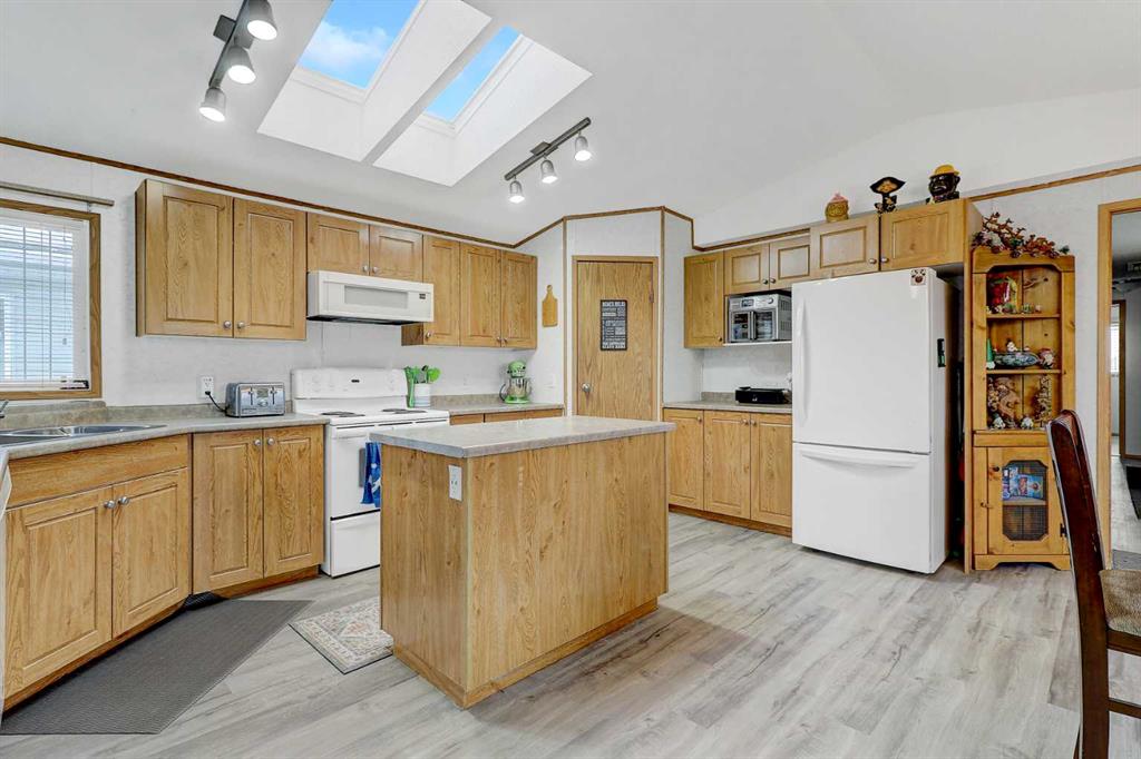 Beautifully Maintained 4 Bedroom Mobile in Clairmont! This bright and spacious home offers exceptional value with 4 bedrooms, 2 bathrooms, and a functional layout perfect for families. The main living area features vaulted ceilings, a large island, and a corner pantry making the kitchen the true heart of the home. The generous primary bedroom includes a walk-in closet and a 4-piece ensuite, while the opposite end of the home offers three additional bedrooms with a bathroom conveniently separated by a privac...