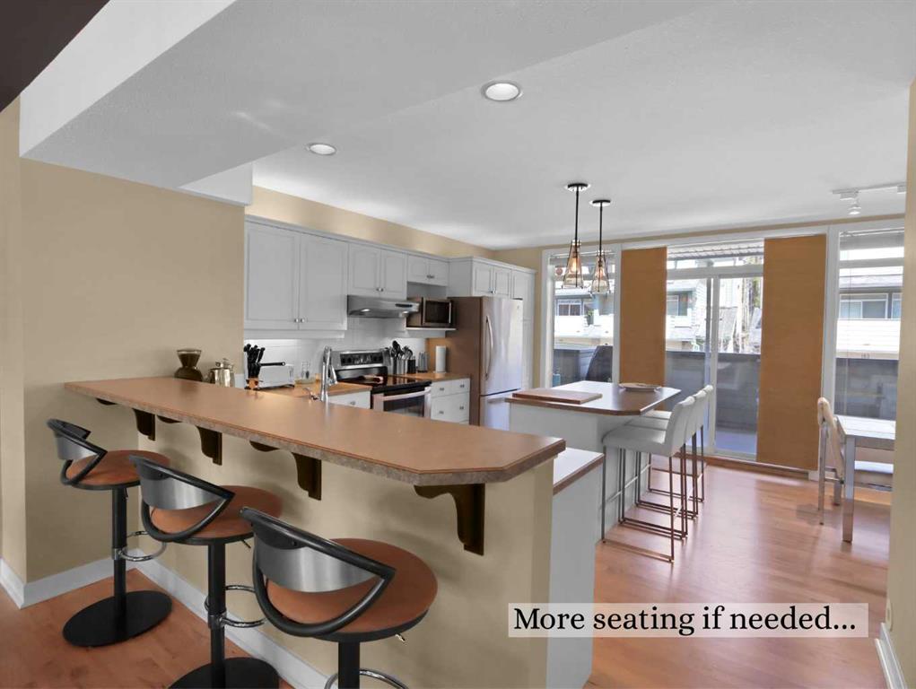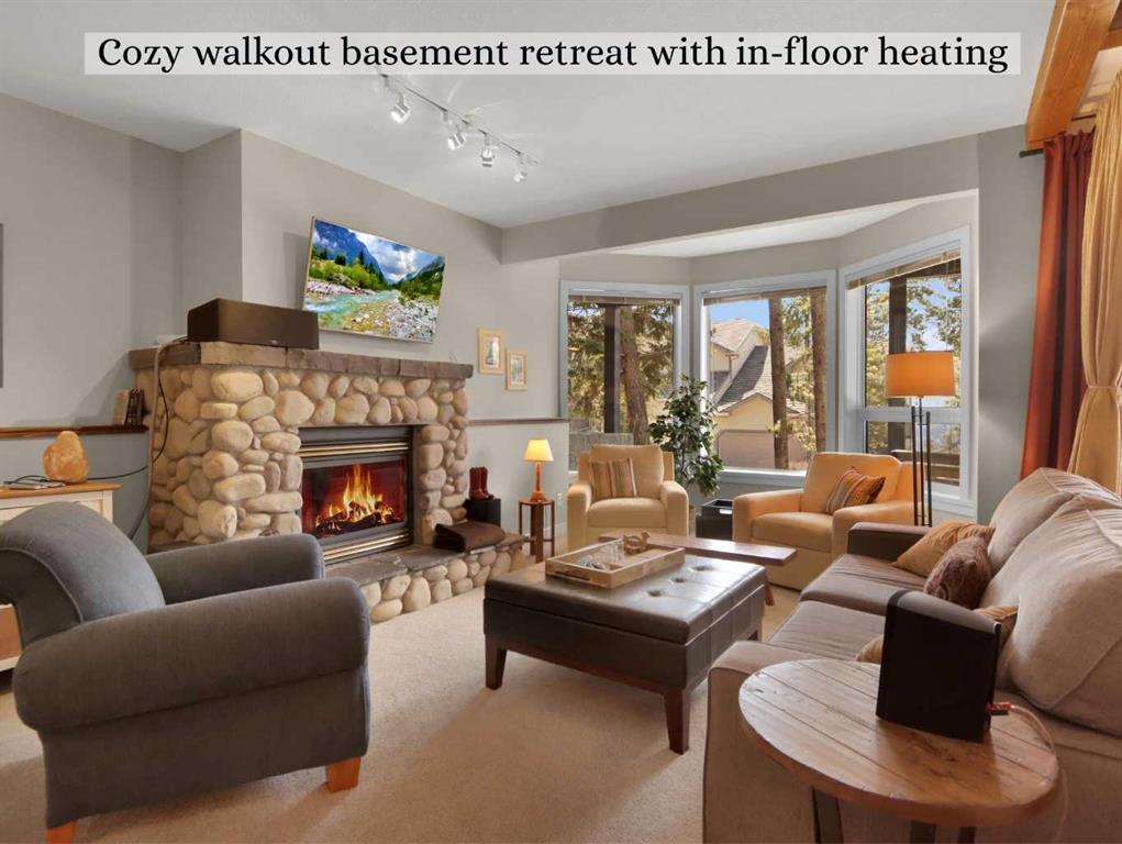 Immerse yourself in breathtaking mountain views from every angle of this 3 bedroom open-plan 2,785 sqft half duplex in Silvertip. The grand foyer leads to a living room with soaring cathedral ceilings, a striking stone-surround gas fireplace, and an impressive wall of south-facing windows. Multiple decks throughout the property provide unparalleled vantage points for soaking in the sun & mountain views. A few steps up is the dining room and spacious kitchen, complete with a versatile nook/office area. Upst...