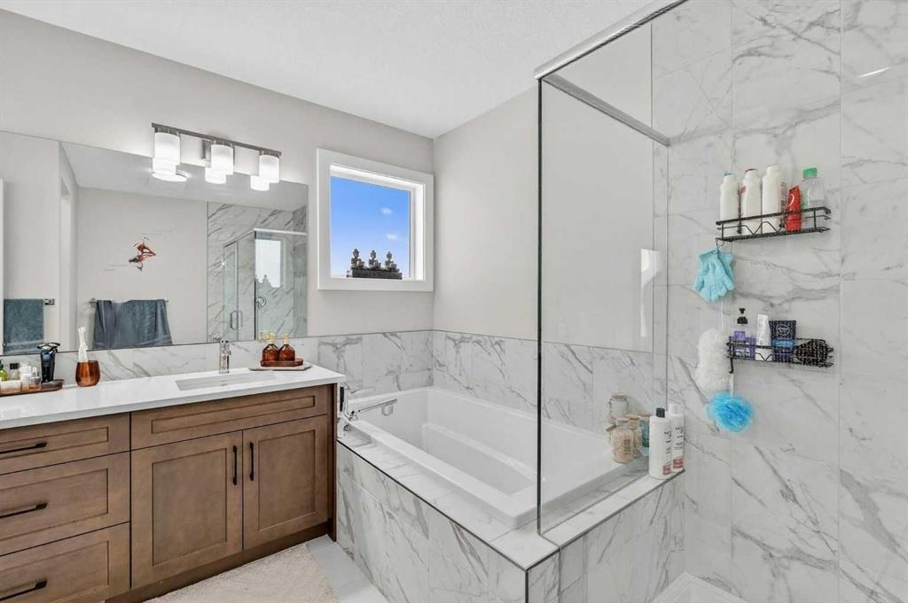 Welcome to this exceptional 7 BEDROOM, 2-storey home with an illegal walkout basement suite, backing onto green space in the community of Cornerstone. Offering outstanding flexibility, income potential, and over 3,000 sq ft of total developed living space, this property includes 2,219 sq ft above grade plus an additional 873 sq ft in the fully finished 2 bedroom illegal suite. Basement development was completed with permits. Any suite conversion would be subject to city/municipality permitting and approval....