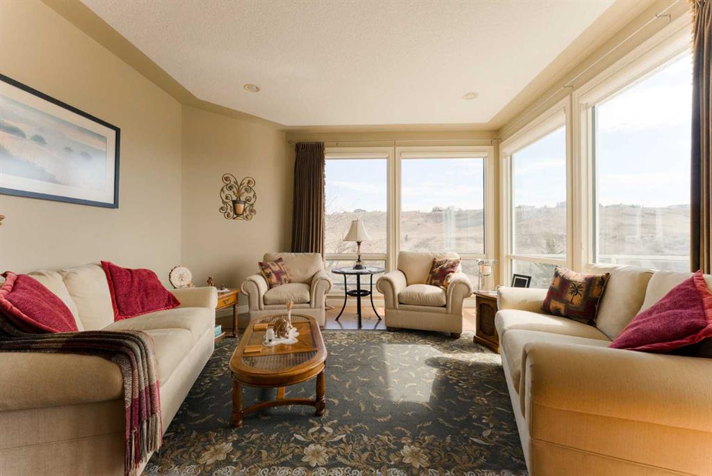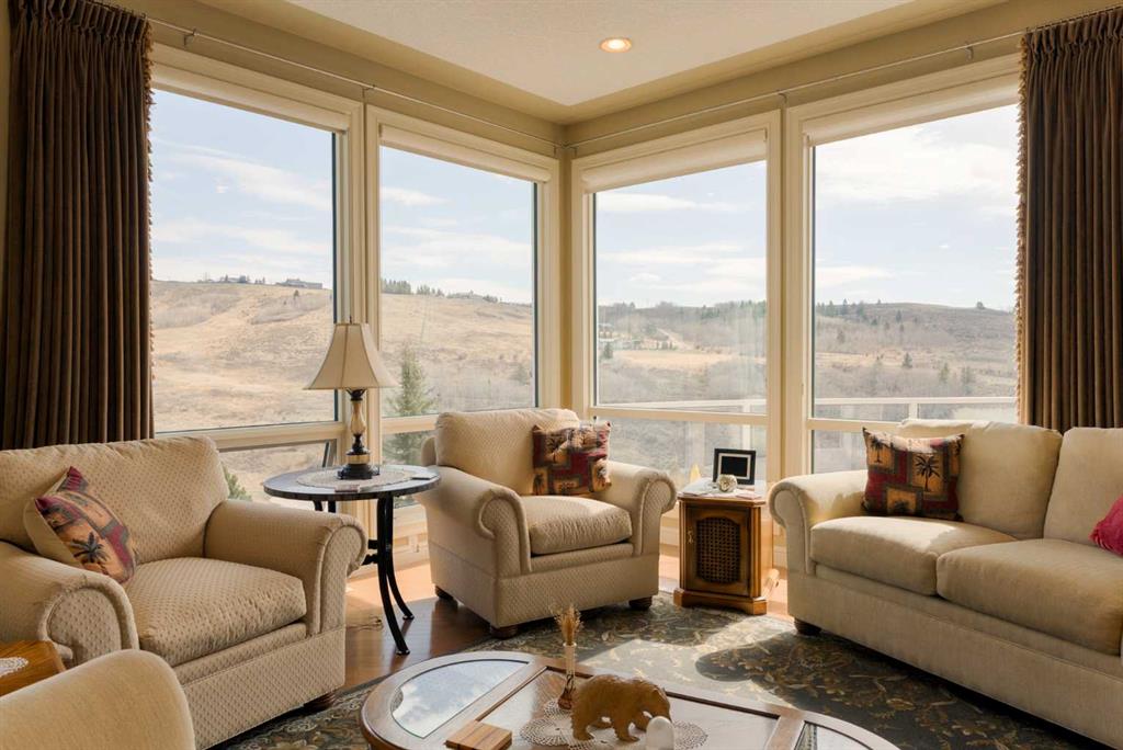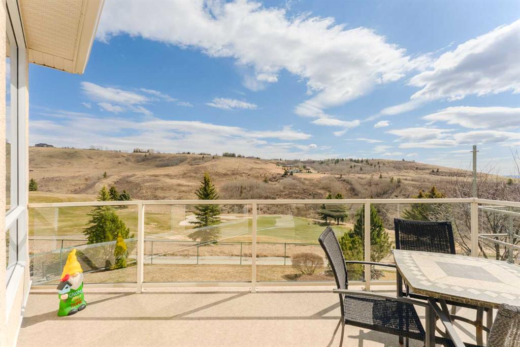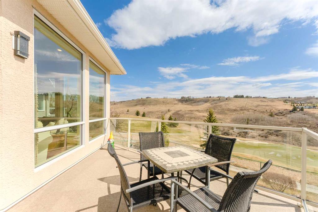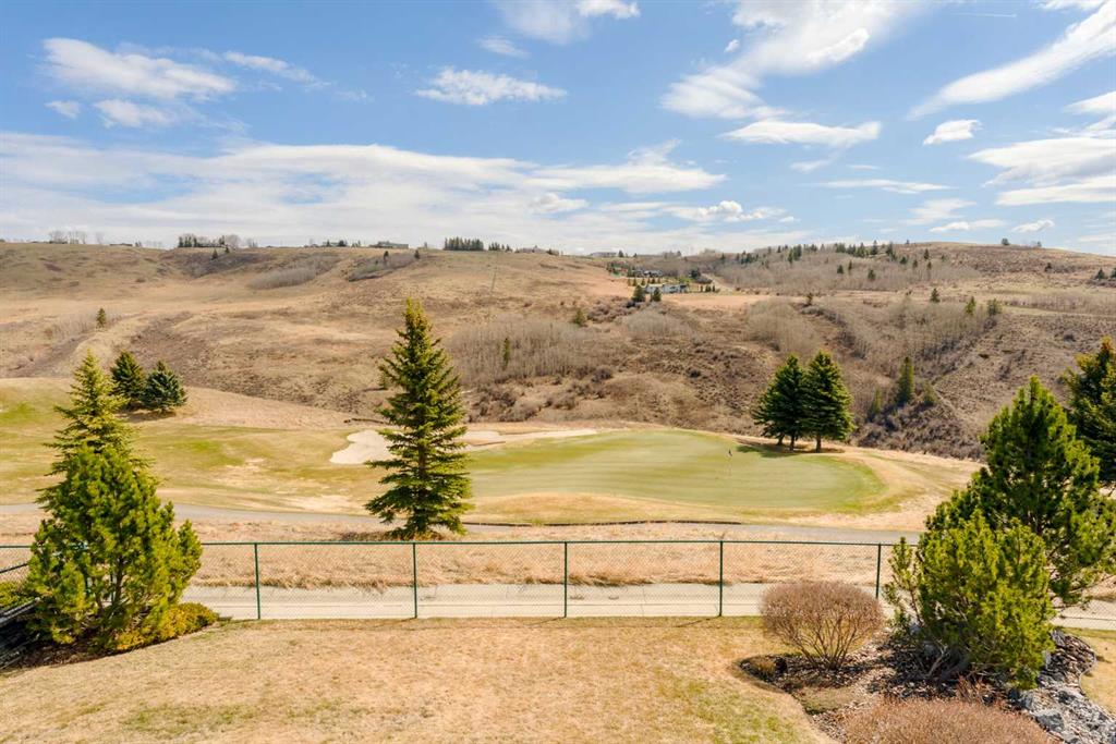 Perched directly above the 13th green of Gleneagles Golf Course, this rare walkout bungalow offers front-row views of the manicured green, sweeping valley landscape, frequent wildlife sightings, and the quiet lifestyle that makes Gleneagles one of Cochrane’s most sought-after communities. Enjoy golf course and valley views from your deck, great room, primary suite, and walkout lower level. Offering over 2800 sqft of developed living space, the home features soaring 10’ ceilings, expansive windows, and a br...