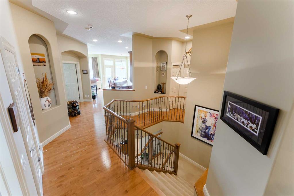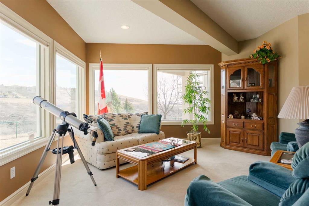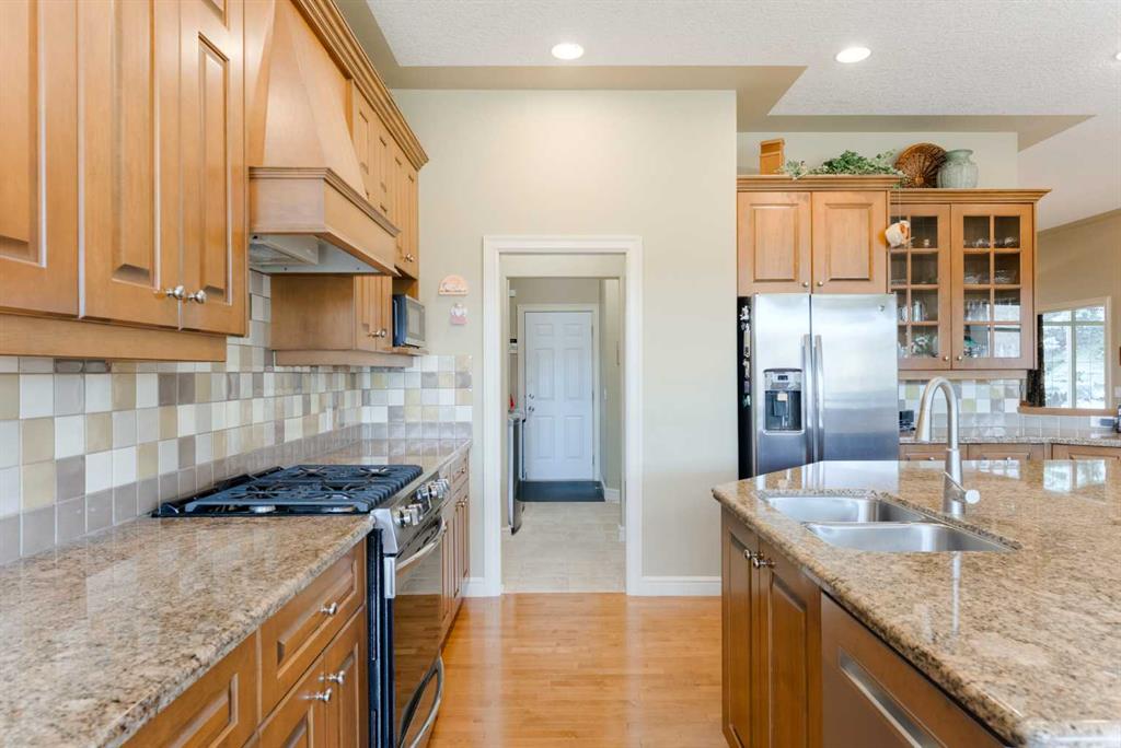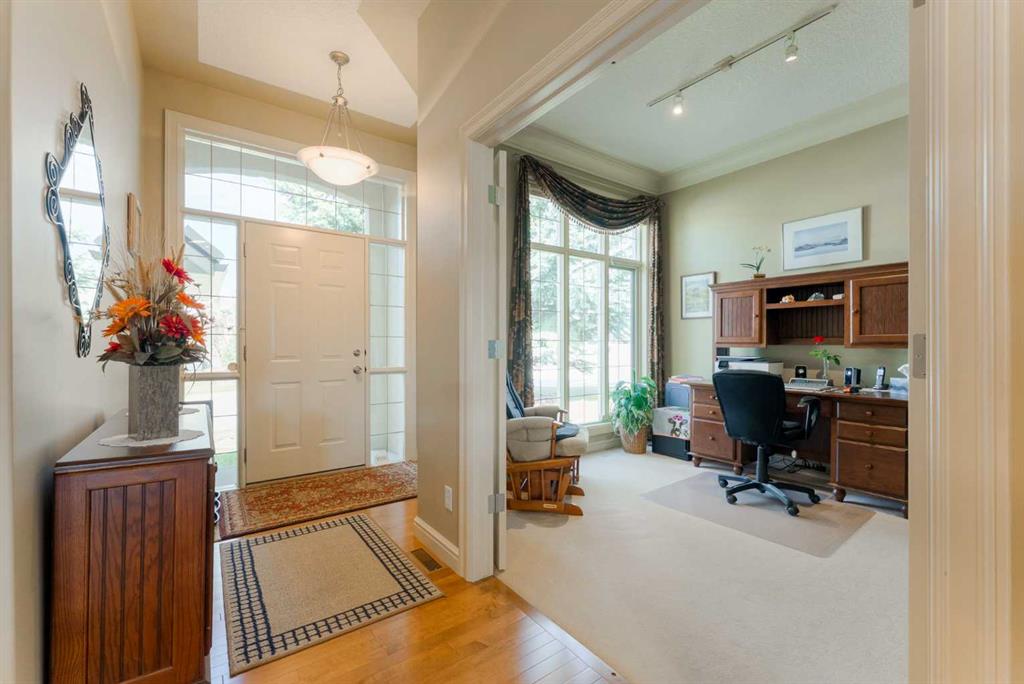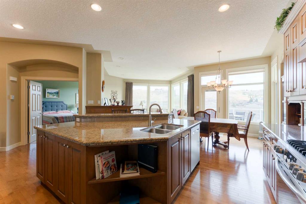 Perched directly above the 13th green of Gleneagles Golf Course, this rare walkout bungalow offers front-row views of the manicured green, sweeping valley landscape, frequent wildlife sightings, and the quiet lifestyle that makes Gleneagles one of Cochrane’s most sought-after communities. Enjoy golf course and valley views from your deck, great room, primary suite, and walkout lower level. Offering over 2800 sqft of developed living space, the home features soaring 10’ ceilings, expansive windows, and a br...