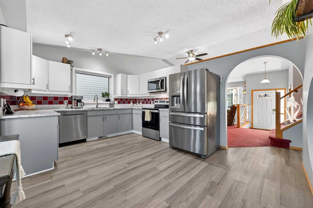 They don’t make them like this anymore !! This splendid 3 bed/2.5 bath large family home has been lovingly maintained and updated through the years and offers features unique to other 4-level splits. A wide and inviting entrance leads to an expansive main floor with vaulted ceilings, front living room, formal dining room, and updated kitchen featuring new vinyl flooring, stainless steel appliances (2024), updated counters, and trendy two-tone cabinets. Stunning glass wall insert looks into the third level f...