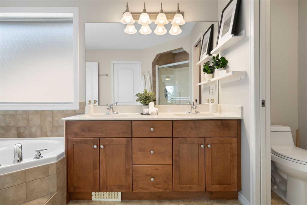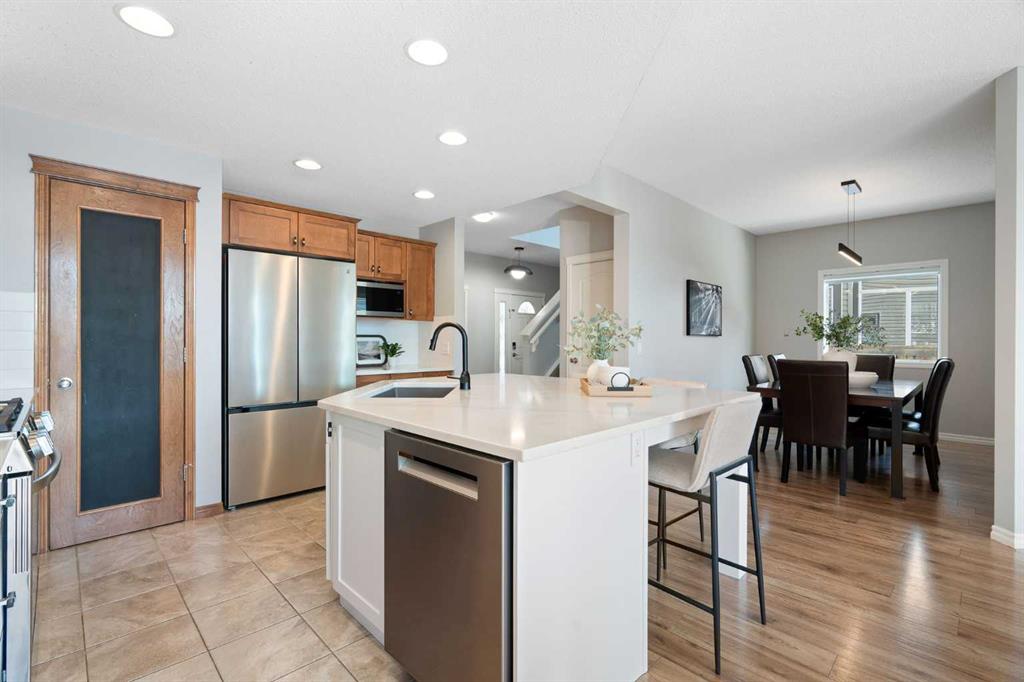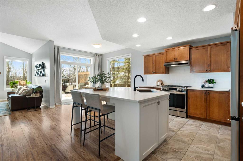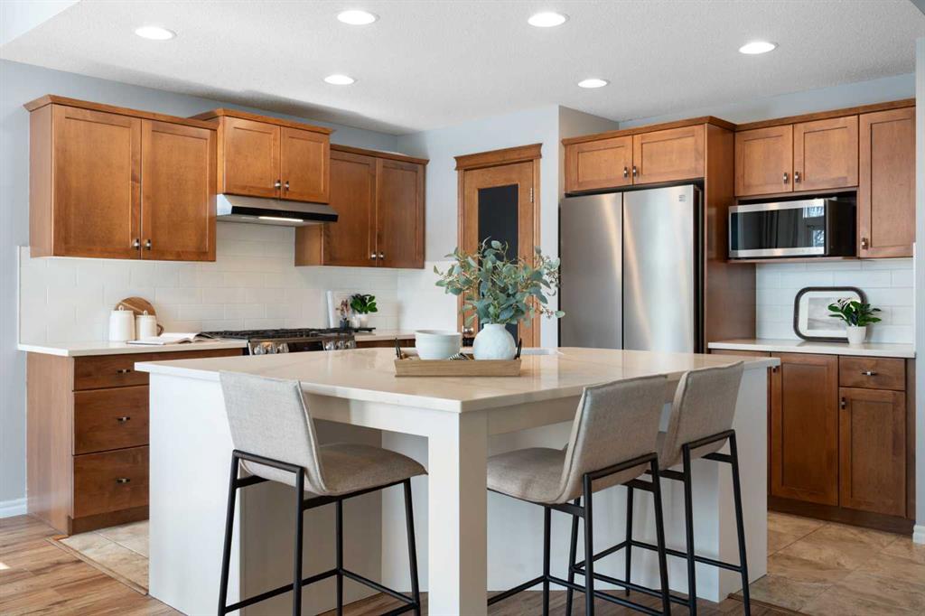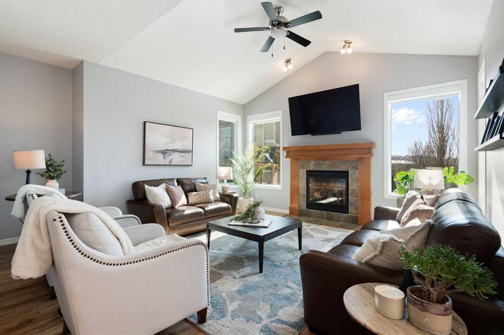 Hello, Gorgeous! Welcome to 142 Coopers Bay SW in Airdrie, located in the highly sought-after community of Coopers Crossing. This fully developed two-storey home offers over 2,200 sq ft above grade, 4 bedrooms, and 3.5 bathrooms, providing a functional layout suited for family living. The main floor features a spacious living room with a gas fireplace and large windows for natural light. The kitchen has been updated with a renovated island, countertops, and backsplash, along with newer appliances including...