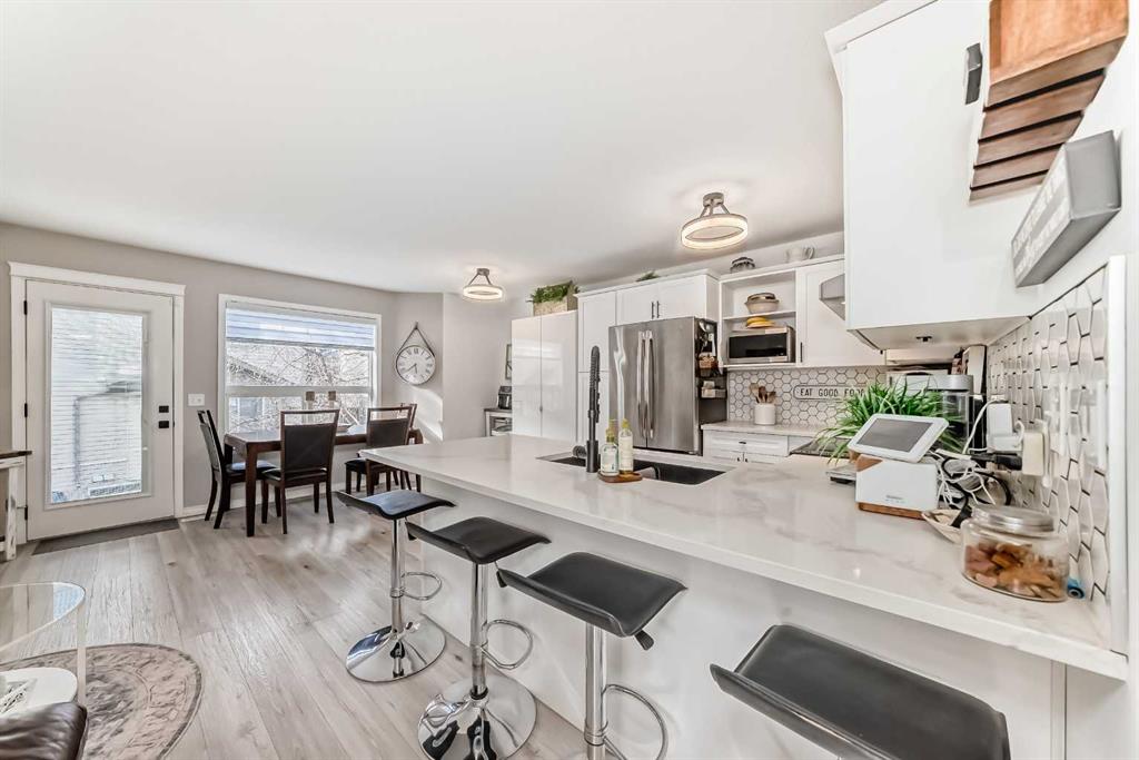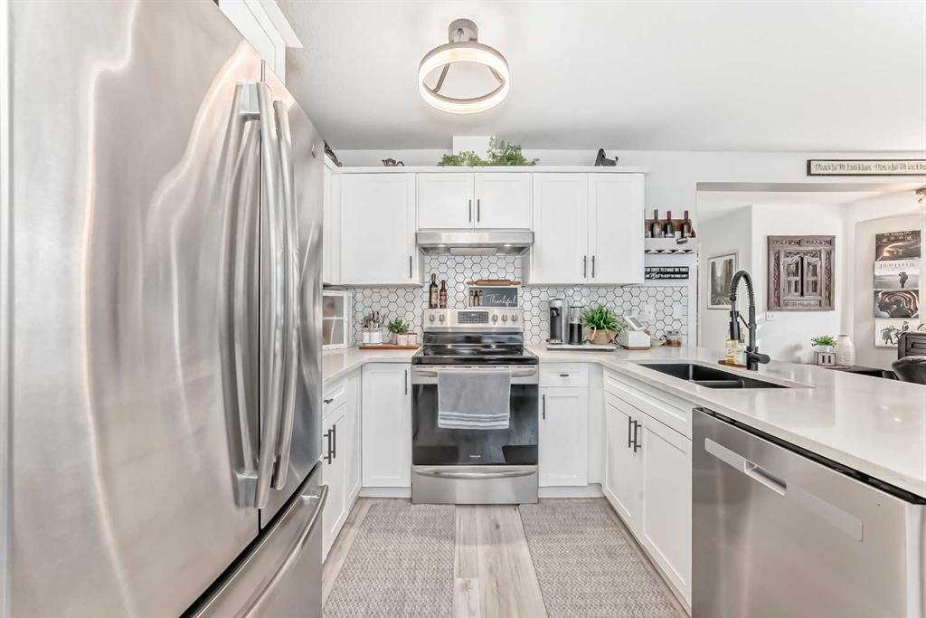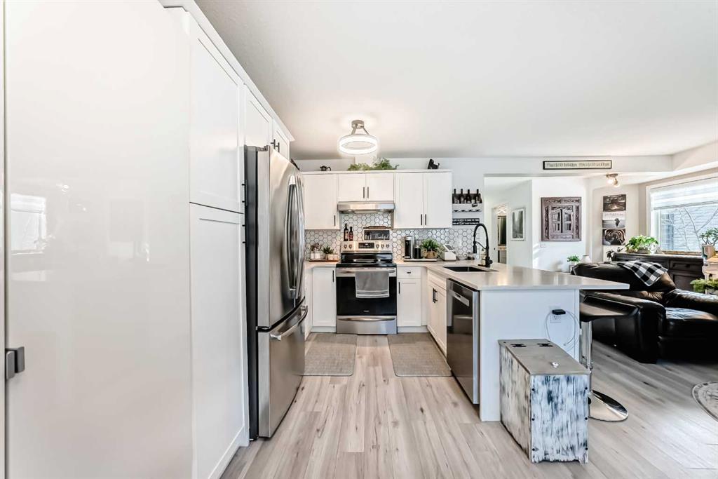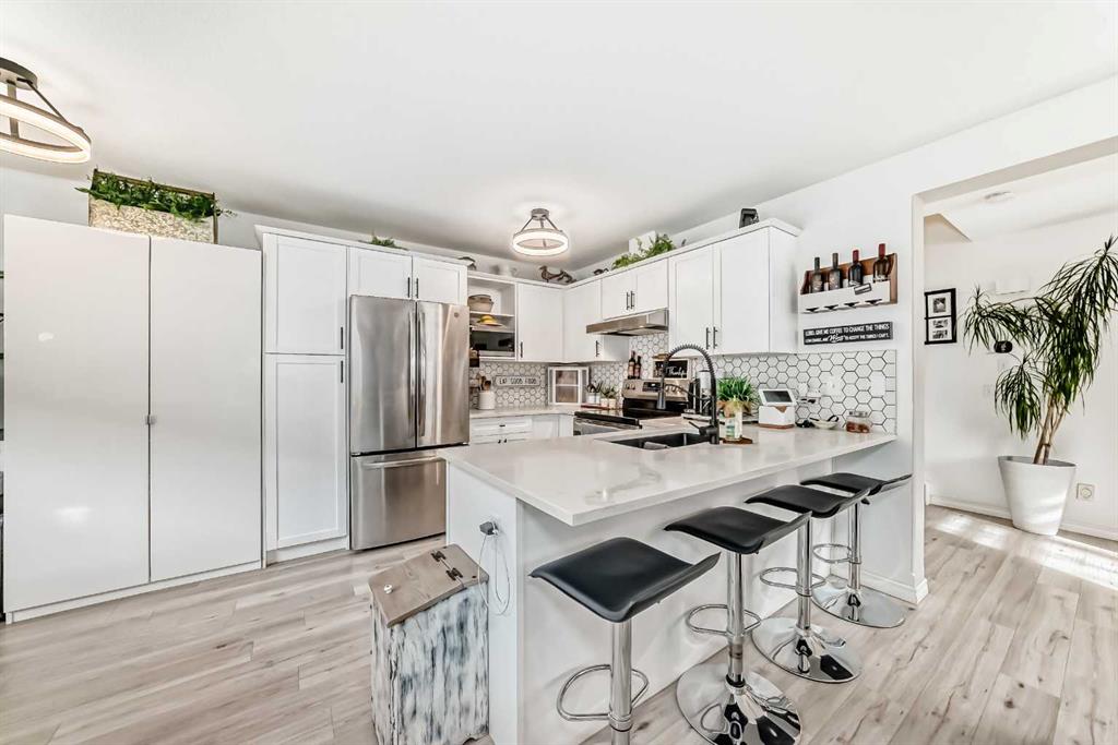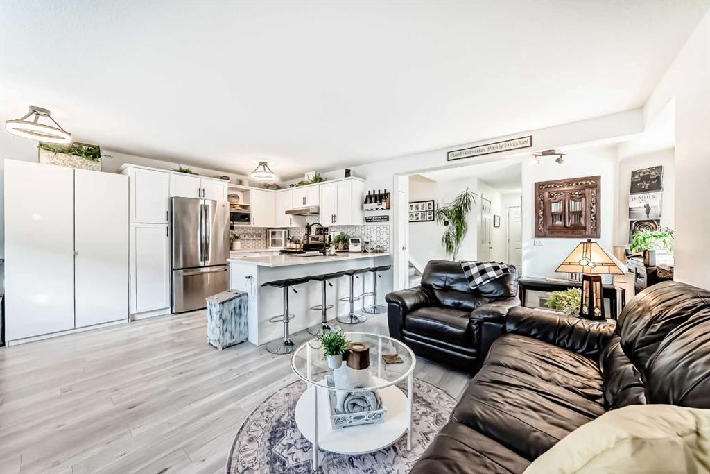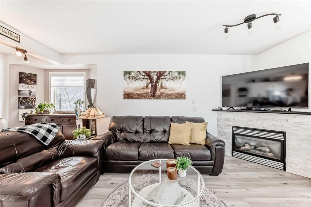 Beautiful, fully finished end-unit townhome with central A/C, thoughtfully maintained and beautifully presented. This bright and inviting home features 4 bedrooms and 3.5 bathrooms. The open-concept main floor showcases a bright kitchen with updated white cabinetry, quartz countertops, newer stainless steel appliances, a stylish tile backsplash, and a large pantry. The adjoining living room features a cozy corner gas fireplace, and durable LVP flooring runs throughout the main level. As an end unit, the hom...
