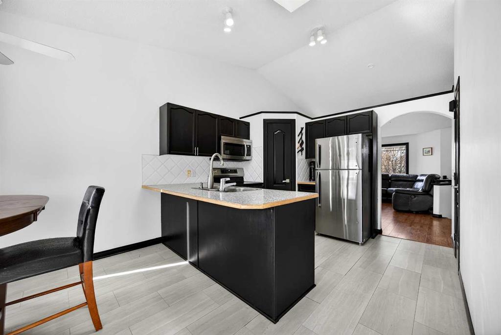 Welcome to this well maintained 5-bedroom, 3-bathroom home in the desirable community of Thorburn-Airdrie, ideally located close to parks/schools and walking paths. Inside, you'll be welcomed by a bright tiled foyer, vaulted ceilings with a skylight, and a spacious kitchen designed perfectly for family living and entertaining. The home features two cozy fireplaces, central air conditioning, elegant oak finishes, and beautiful ceramic tile accents throughout. This property showcases numerous updates, includi...