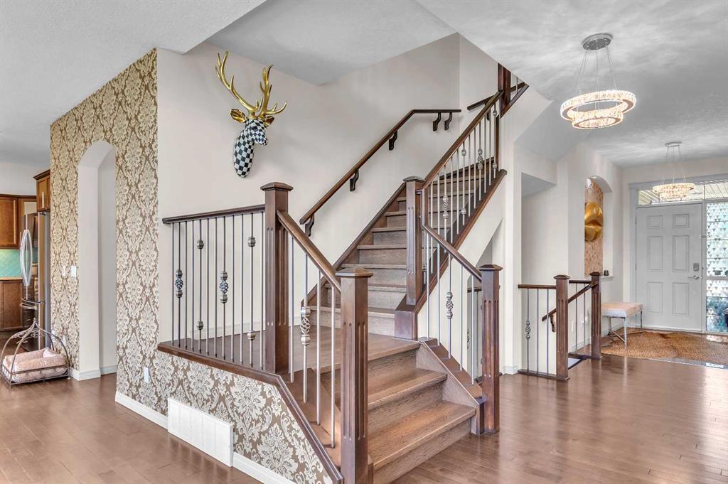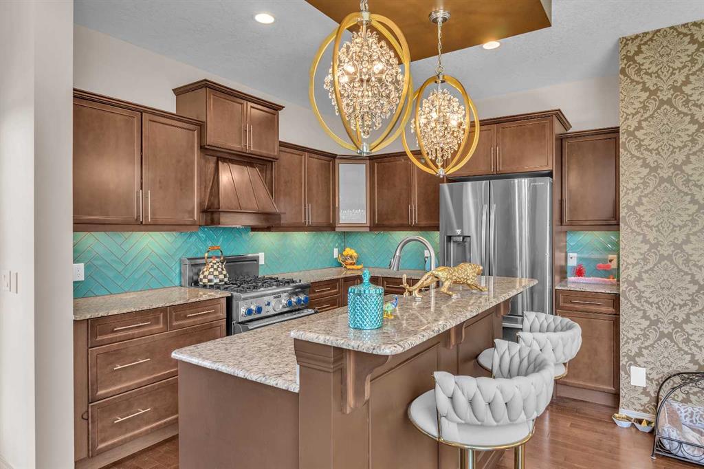 This STUNNING walkout onto Rainbow Falls pond is a must see! Featuring 5 bedrooms, theatre room, and panoramic water views, at 3850 sq.ft of space, this executive home blends size, style, and serenity in one of Chestermere’s most sought-after communities. Step inside to a bright and open main level with soaring ceilings, expansive windows framing the water, and a chef-inspired kitchen with granite counters, rich cabinetry, and a large centre island—perfect for family living and entertaining. The living room...