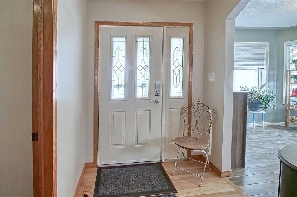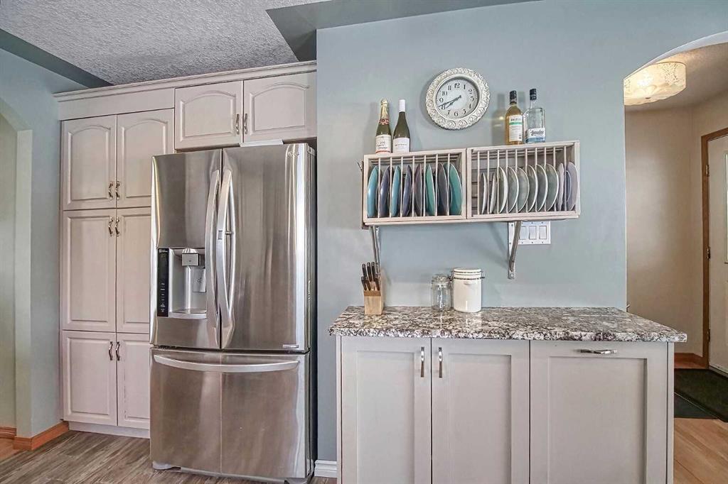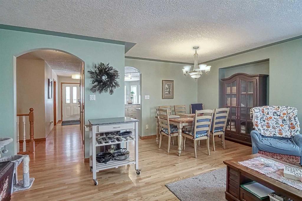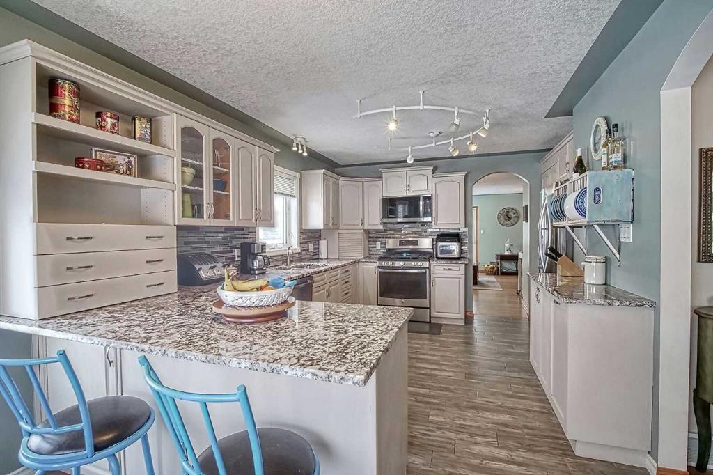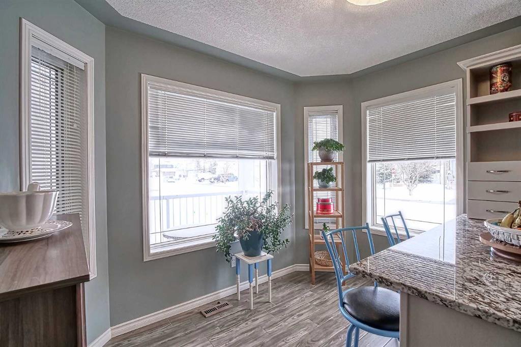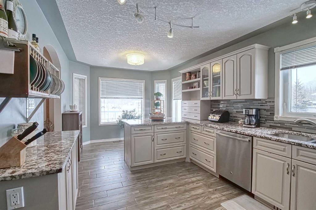 BEAUTIFULLY MAINTAINED BUNGALOW ON A HUGE CORNER LOT IN Crossfield, ideally located near parks and green spaces in a quiet neighbourhood. LOTS OF FRONT PORCH SITTING in this charming 4 bedroom, 3 bath home with a HEATED DOUBLE ATTACHED GARAGE features an updated kitchen with refreshed paint, flooring and lighting, some newer upper cabinetry, GRANITE COUNTERTOPS AND UPGRADED STAINLESS STEEL APPLIANCES INCLUDING A GAS RANGE, plus a two-seat breakfast bar and bright bay window nook for casual dining. The adjoi...