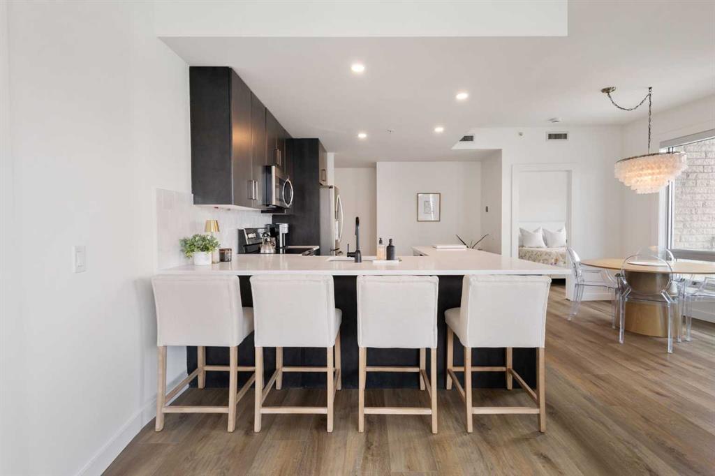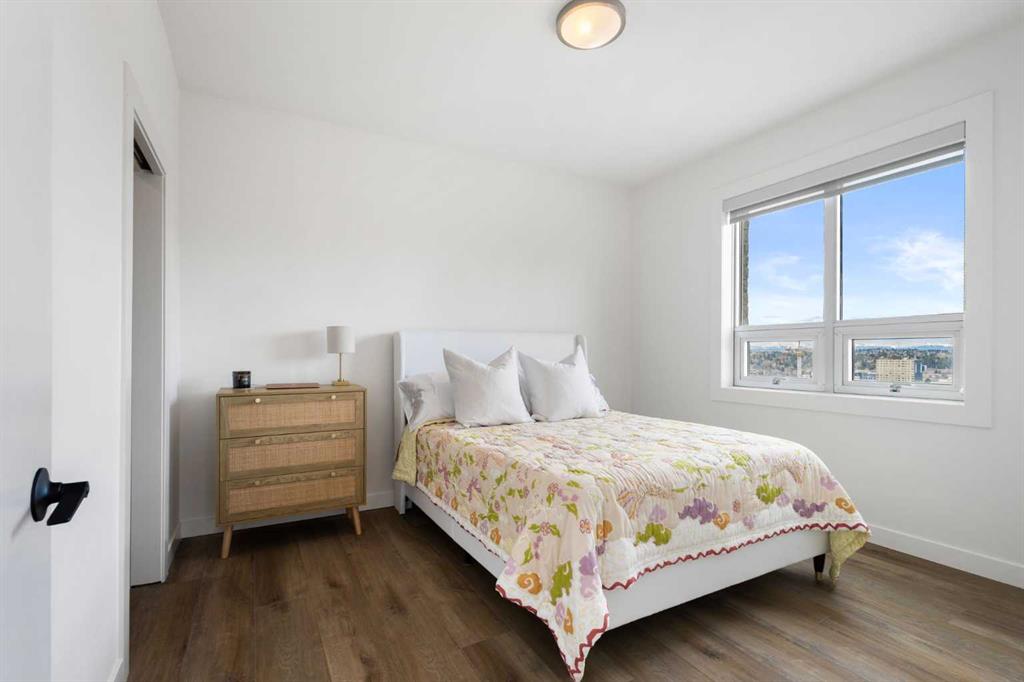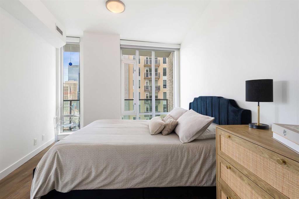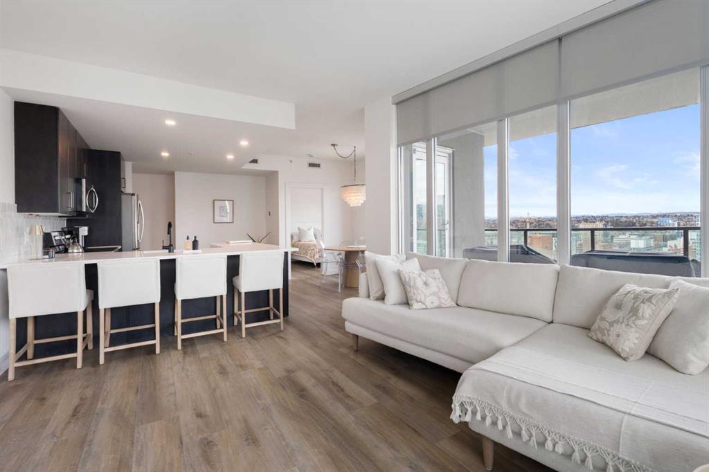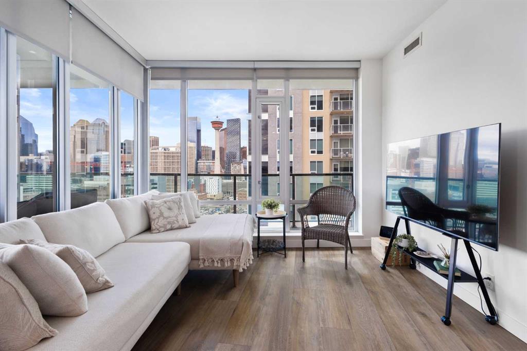 Welcome to this stunning 18th-floor sky suite offering breathtaking panoramic views of the city skyline and Rocky Mountains. Located in Sasso, a 18+ concrete building in the heart of Calgary’s vibrant Beltline, this home combines lifestyle, location, and flexibility. Recently updated throughout, this unit features new luxury vinyl plank flooring, fresh paint, new bathroom tile, and quartz countertops in both the kitchen and bathrooms, giving the home a clean, modern feel. The open-concept layout is design...