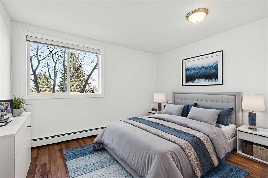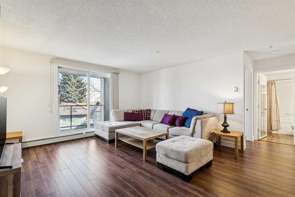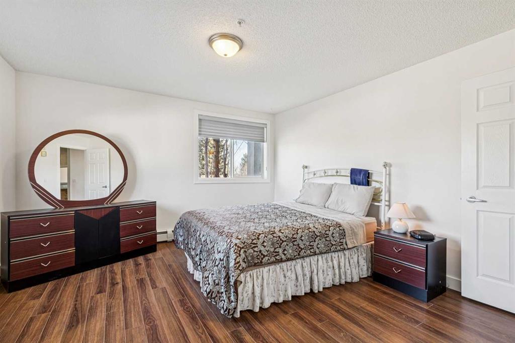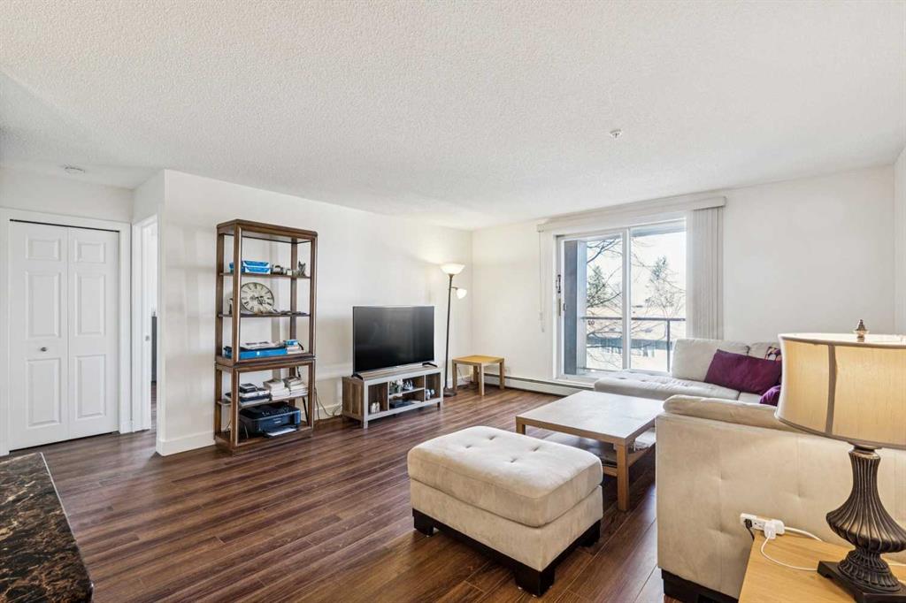 Welcome to Unit 202 in the highly desirable Valhalla Ridge complex, ideally located in the established community of Queensland — just up the road from the entrance to Fish Creek Park and its incredible network of scenic walking and river pathways. This spacious 2 bedroom, 2 bathroom corner unit offers over 1,000 sq ft of comfortable living and is perfectly positioned at the back of the building, away from the parking lot and traffic for added privacy and quiet. A well-maintained building with elevator acce...
