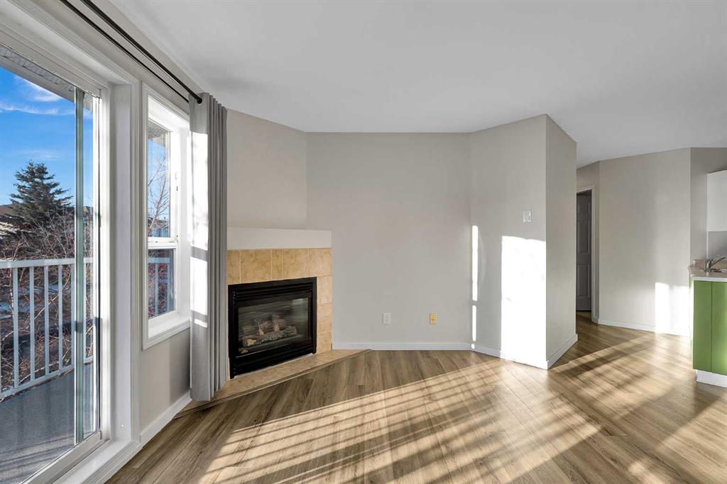 Immediate possession available for this move-in ready home. Located on the second floor of a well-maintained walk-up, this 991 sq ft unit delivers value and everyday comfort with its natural light, thanks to its south and west facing windows. The open concept kitchen, dining and living space is ideal for entertaining and features a cozy gas fireplace along with patio doors opening to a west facing balcony. Two generously sized bedrooms are offered, including a primary suite with a walk-in closet. Addition...