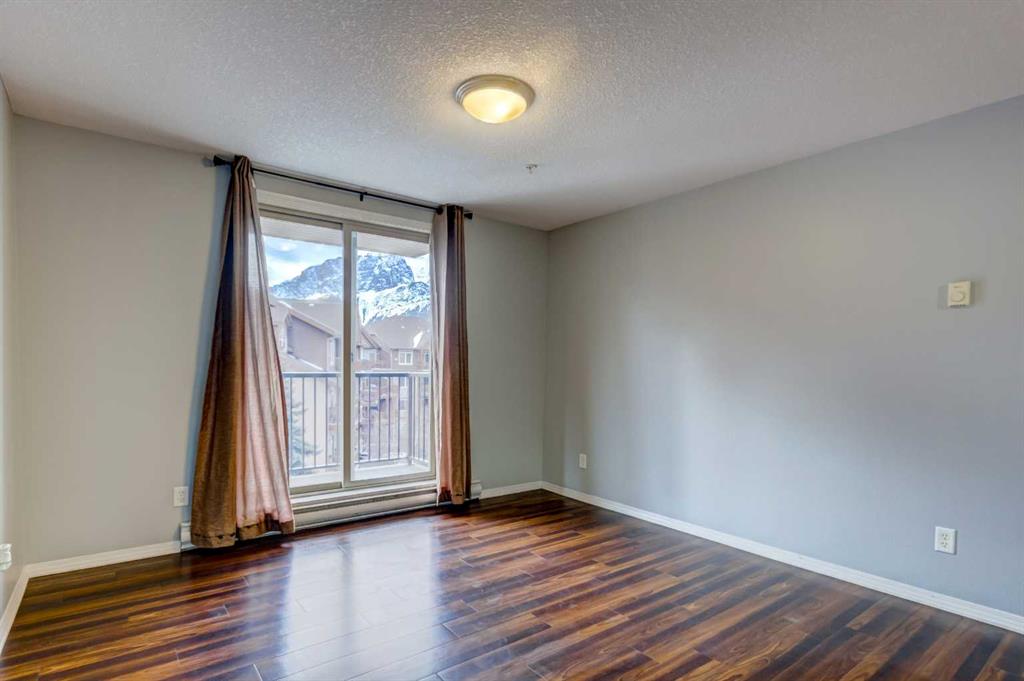 Bright, freshly painted, and move-in ready! This 2 bed / 2 bath Fairholme Village condo is a true gem and a rare opportunity. It’s ideal as a first home, upsizer home, or perfect for a weekend getaway to Canmore. The smart, open-concept layout makes everyday living or entertaining easy, while the sunny south-facing balcony delivers incredible mountain views, including the Three Sisters. Both bedrooms enjoy natural light and more mountain views, plus a private 4 piece ensuite and walk in closet just off the...