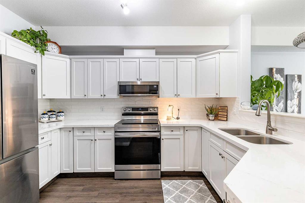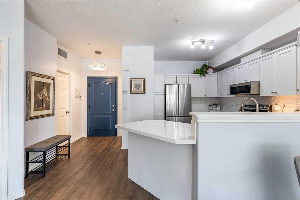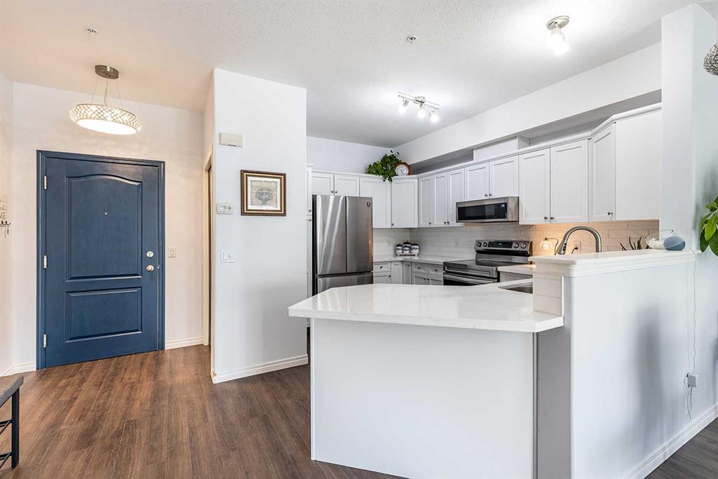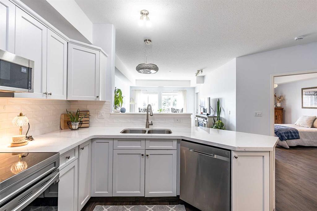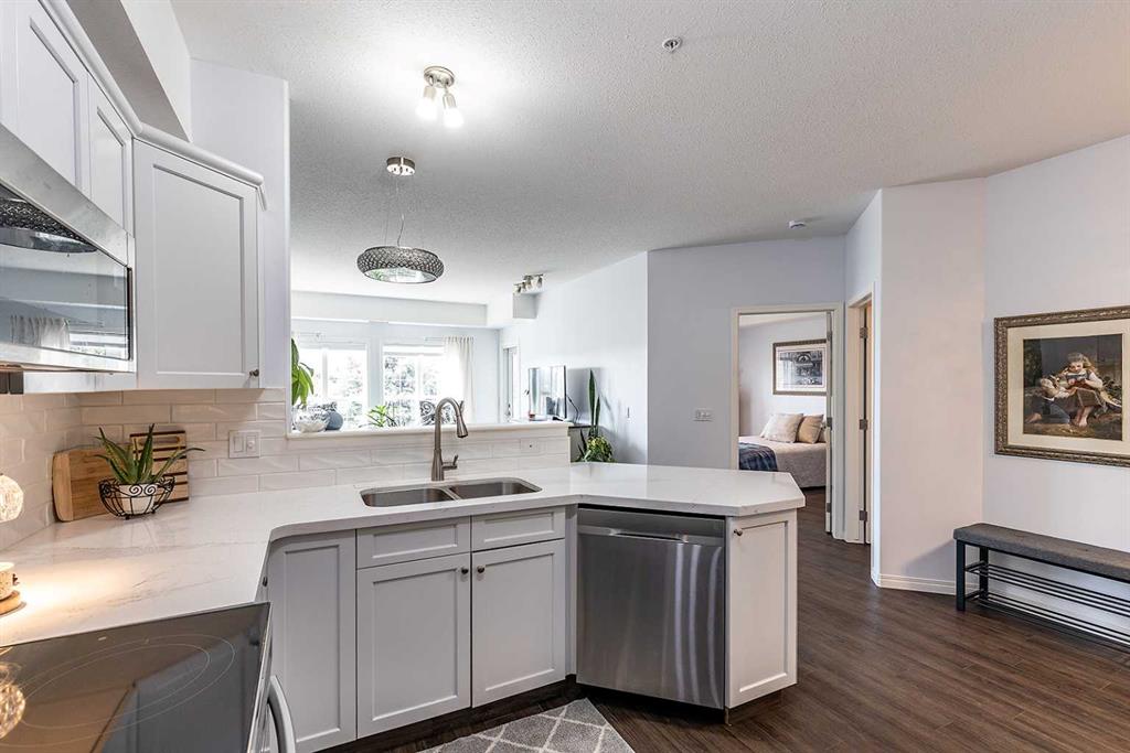 Enjoy condo living at its finest, in this updated unit with underground parking. There’s an easy kind of comfort in this bright condo that you notice from the moment you step inside. Sunlight pours through the large windows, illuminating the stylish vinyl plank flooring that runs cohesively throughout. The space immediately feels open, calm, and welcoming. The kitchen is stunning, with quartz countertops, white tile backsplash, updated cabinetry, and a full stainless steel appliance package. Enjoy a peacefu...