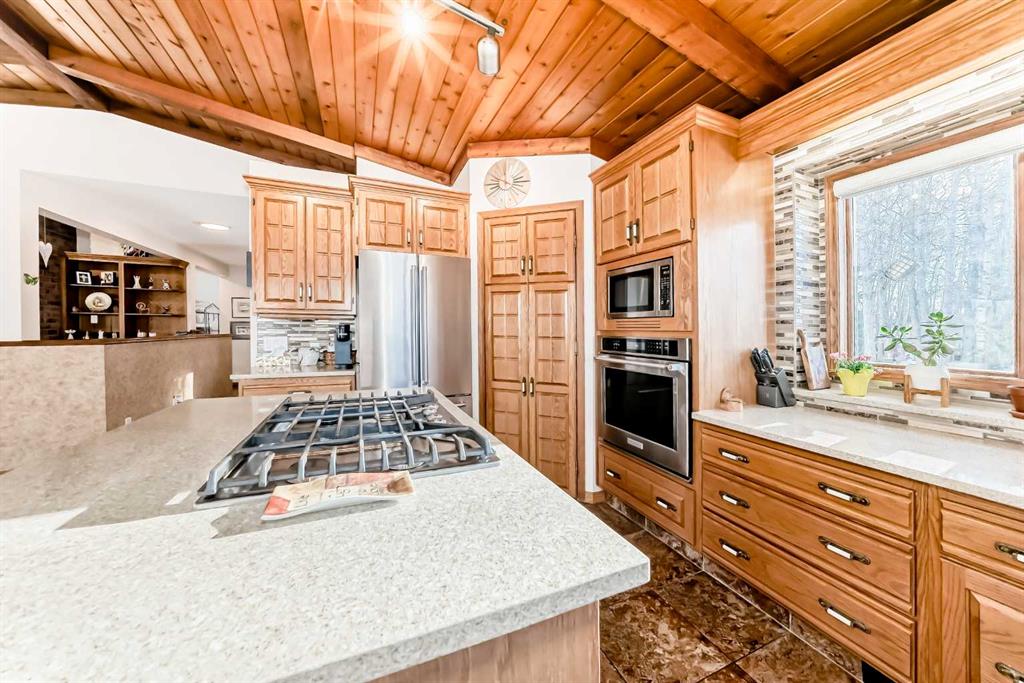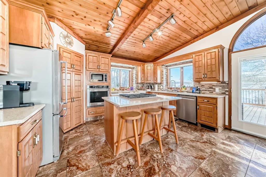 Welcome to this beautiful original-owner 3.39-acre custom-built acreage, offering a fully finished home with 5 bedrooms, 4 bathrooms, a large double attached garage, and an incredible 50’ x 70’ heated shop with a 12’ x 50’ addition complete with its own washroom. Step inside and you’ll immediately notice the soaring vaulted cedar ceilings and the stunning recently renovated kitchen, designed to impress. This chef’s kitchen features solid oak cabinetry, granite countertops, stainless steel appliances, a larg...