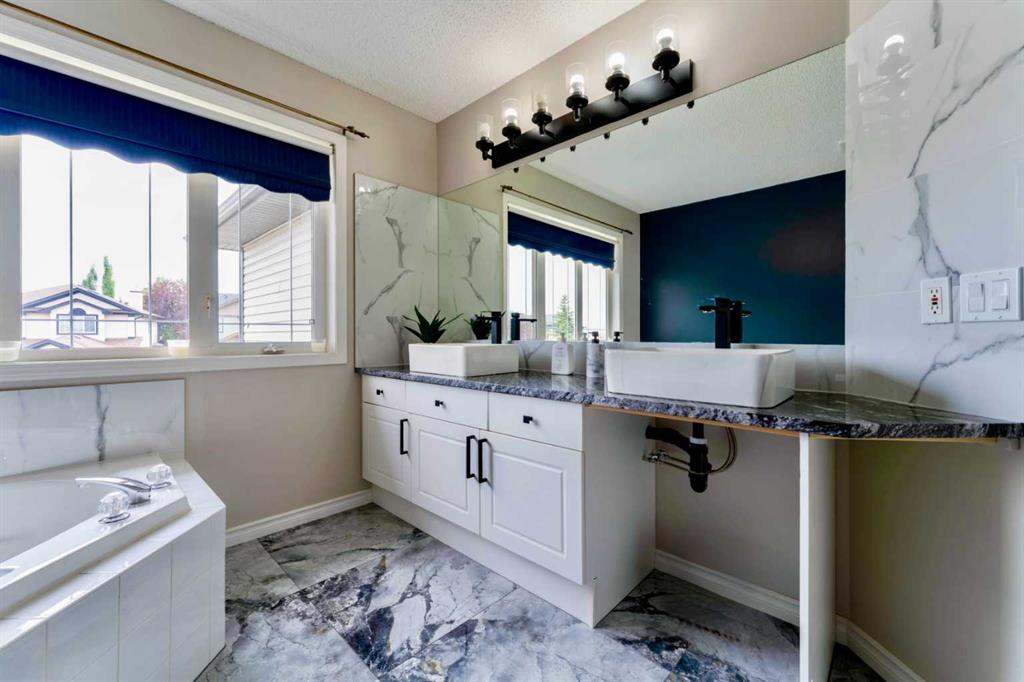 Welcome to 276 Fairways Bay NW, Airdrie!! This beautifully renovated 2-storey backs onto the GOLF COURSE, offering stunning views and a peaceful lifestyle. Featuring a bright open layout with a chef’s kitchen, MAIN FLOOR OFFICE, and spacious living areas. Upstairs features a BONUS ROOM and three bedrooms, including a luxurious primary suite. The NEWLY FINISHED BASEMENT adds 2 bedrooms, a BAR, and a full bath. Enjoy an ATTACHED DOUBLE GARAGE, nearby schools, parks, and shopping — all in the sought-after Fair...
