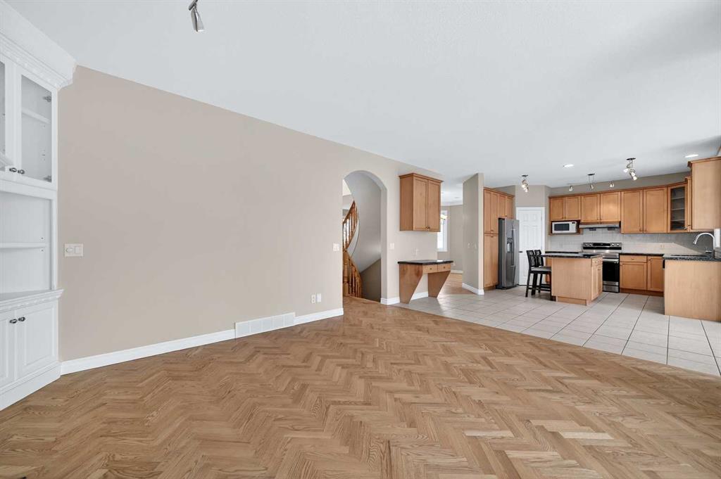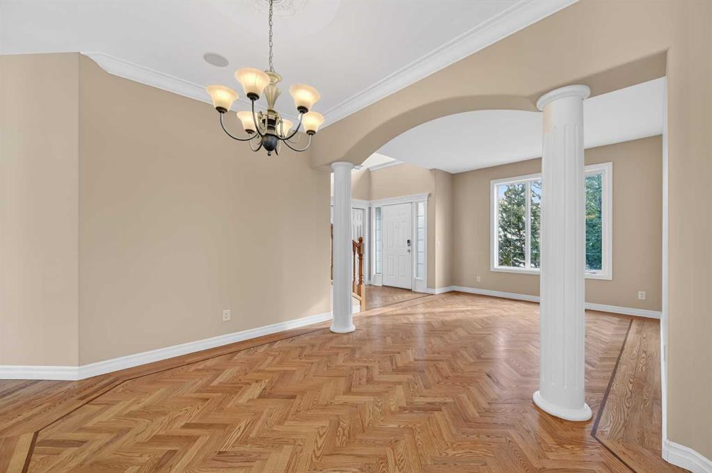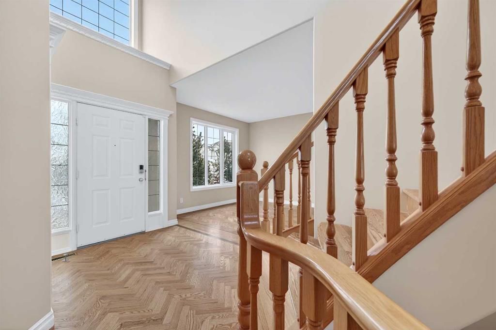 Welcome to your dream family home in the heart of the Hamptons, one of Calgary’s premier golf course communities. This stunning house makes a big impression as you enter with its soaring 18-foot ceilings, bright skylight, and beautiful curved staircase. You will love the high-end feel of the chevron-patterned hardwoods, fresh paint, and recently updated carpets throughout, and the roof was done in 2025. The main floor is perfect for family life, offering a sunny den or home office behind French doors and a ...