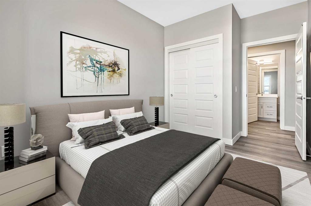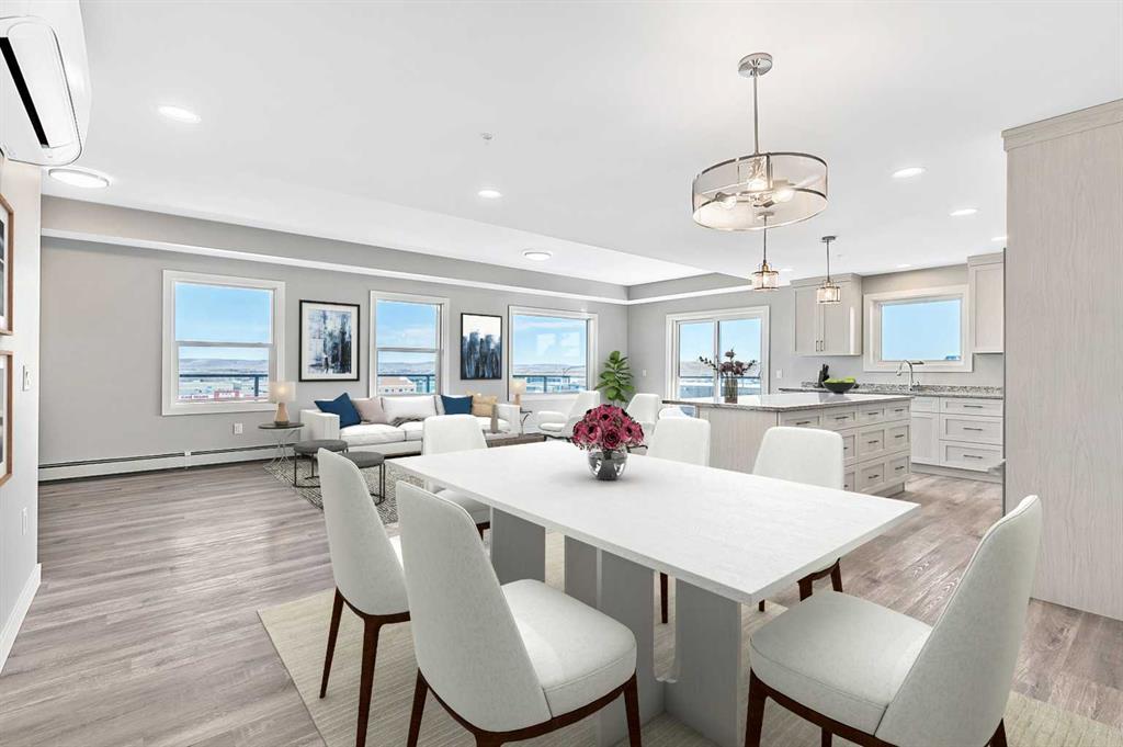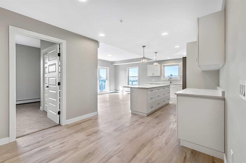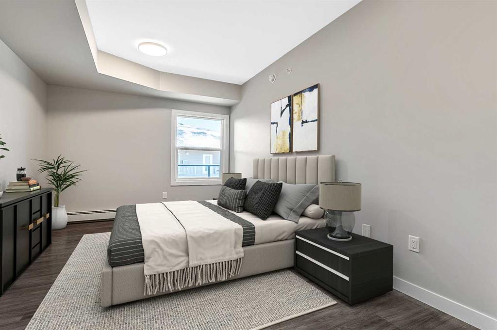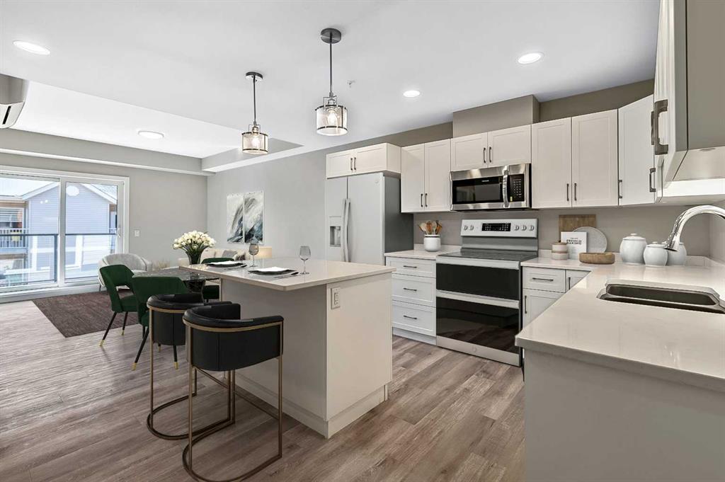 Welcome to modern condo living designed for comfort, quality, and convenience. This well-appointed residence offers 9-foot ceilings, 8-inch hollowcore concrete floors, and a dual-wall construction system, providing exceptional durability and superior soundproofing. The open-concept kitchen is finished with quartz countertops, a large island with power and pendant lighting, built-in microwave and dishwasher, and a water line to the refrigerator for an ice maker—perfect for both everyday living and entertaini...