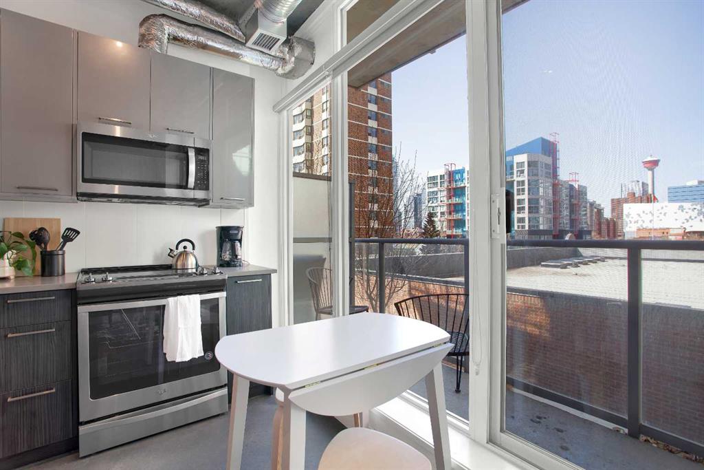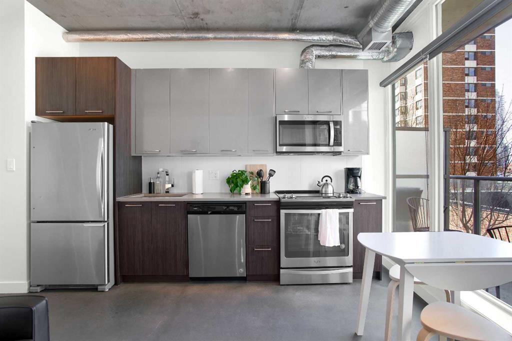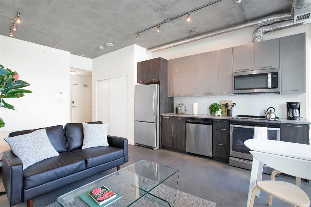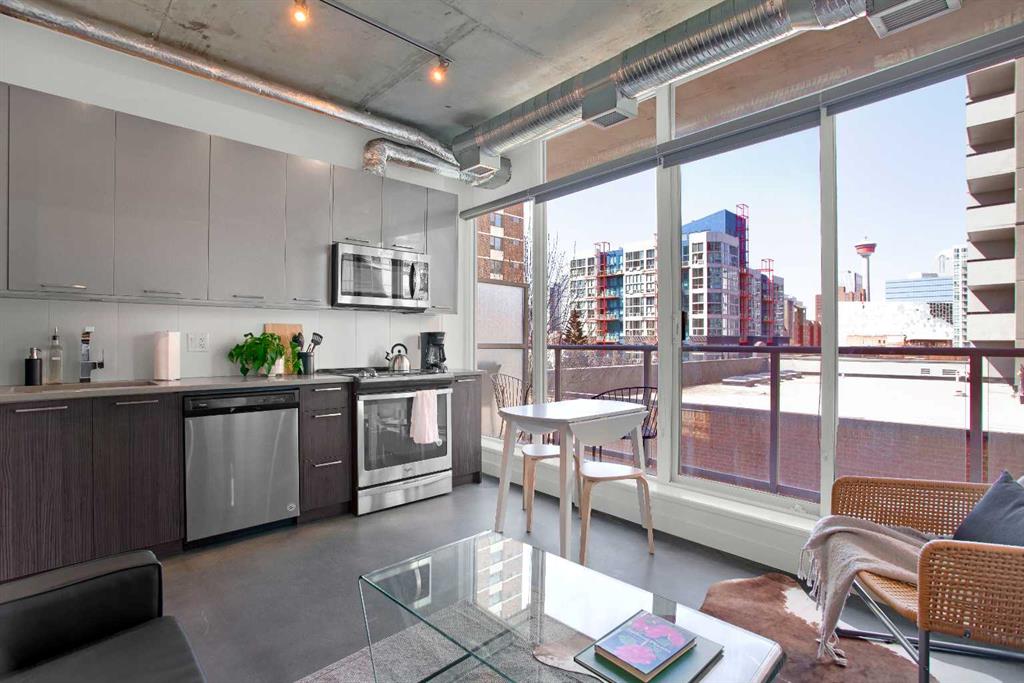 This thoughtfully designed studio at INK by Batistella offers a smart, efficient layout that truly has everything you need for comfortable urban living. Polished concrete floors and floor-to-ceiling windows give it that signature loft feel, while the West facing exposure brings in natural light and views of the Calgary Tower. Enhanced by 9’6” ceilings, the kitchen is finished with quartz countertops, stainless steel appliances, and plenty of cabinetry, all flowing seamlessly into the main living space. In-s...