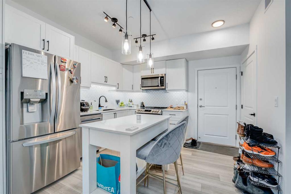 Welcome to comfortable, low-maintenance living in the friendly, northwest community of Sage Hill. This bright one-bedroom condo comes with TITLED UNDERGROUND PARKING and offers a smart, functional layout that is bathed in natural light. Easy care vinyl plank flooring runs through the main living space and bedroom and is complemented by quality stainless-steel appliances, including an induction stove, & quartz countertops in the kitchen. Convenient in-suite laundry. Enjoy year-round comfort with AIR CONDIT...