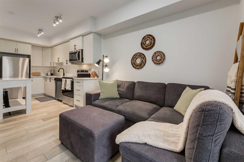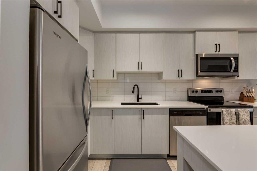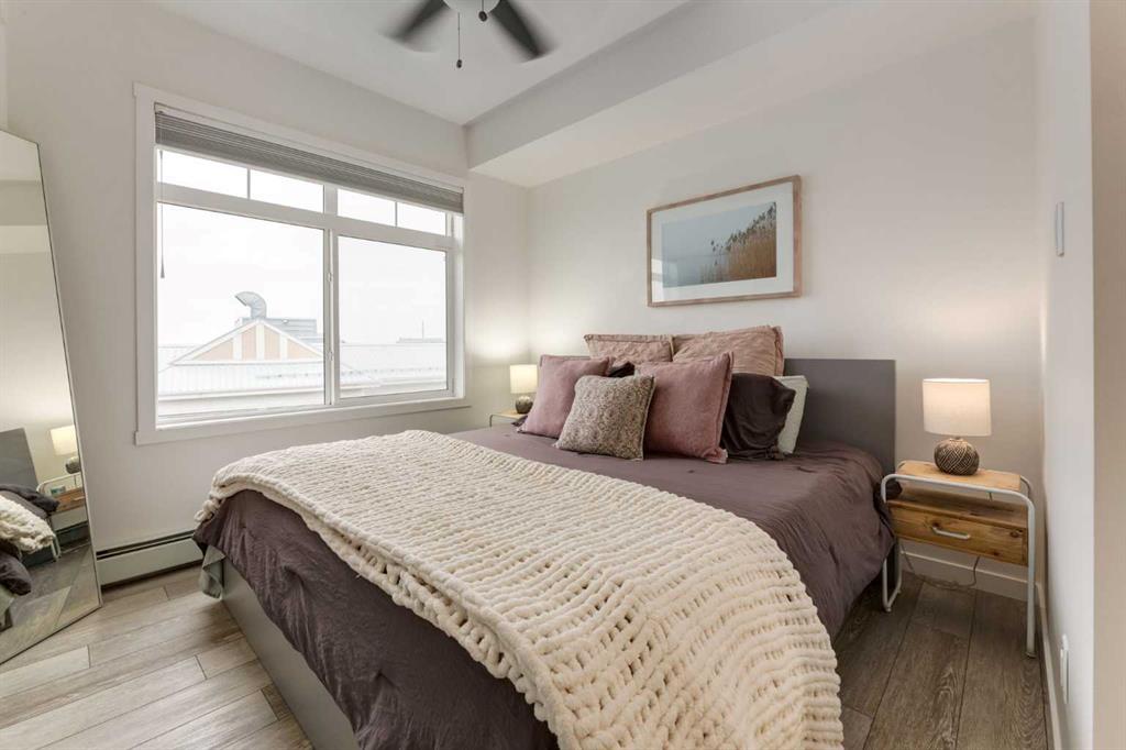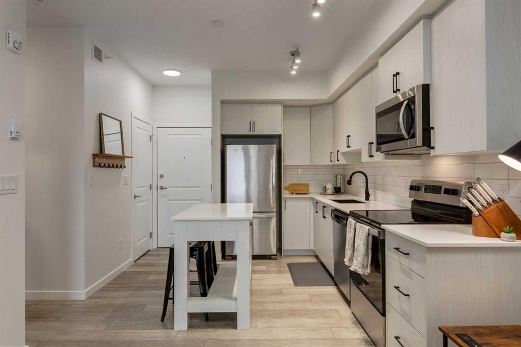 Welcome home to this beautifully upgraded top floor condo; 2 bedrooms, 2 bathrooms, 1 titled underground parking with one assigned storage, offering the perfect blend of modern style, functionality and comfort in one of Calgary’s most desirable northwest communities. Step inside to a bright, open concept layout featuring luxury vinyl plank flooring and an abundance of natural light throughout. The upgraded kitchen impresses with quartz countertops, full height cabinetry, stainless steel appliances and a mo...