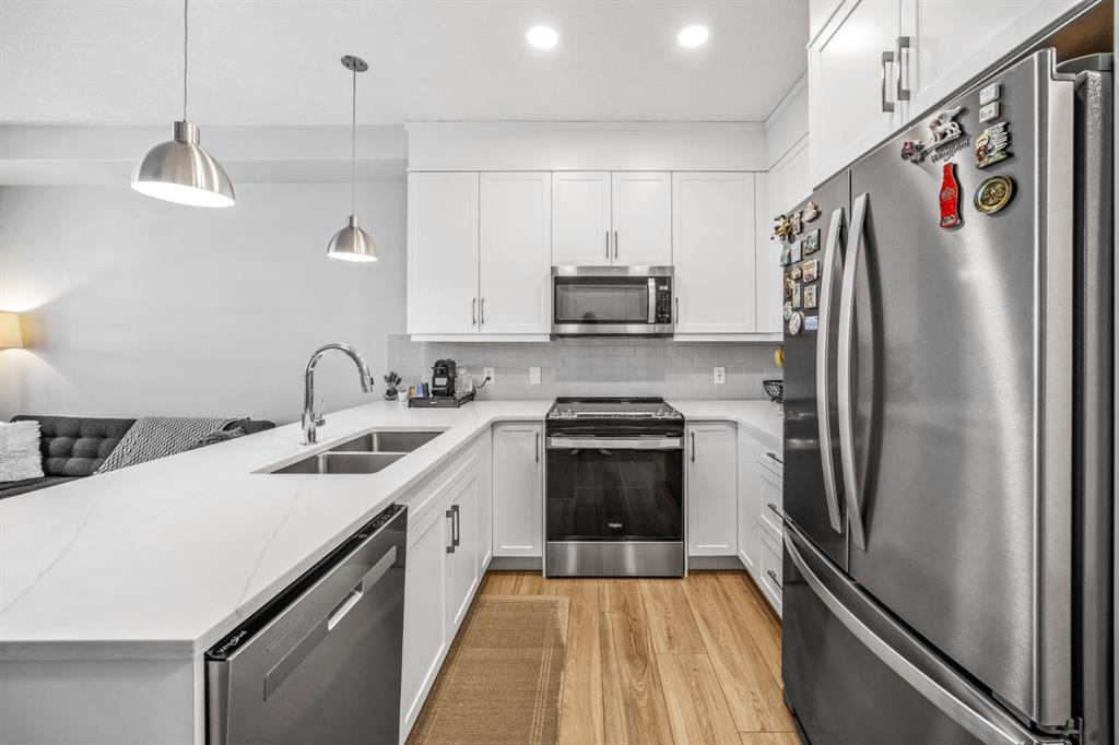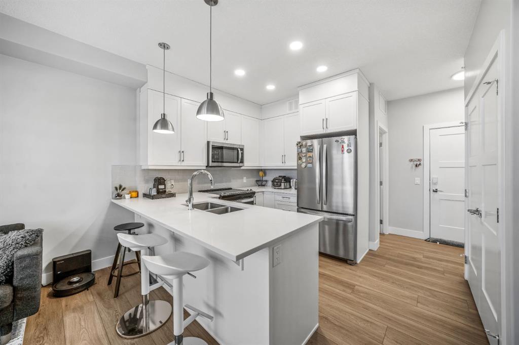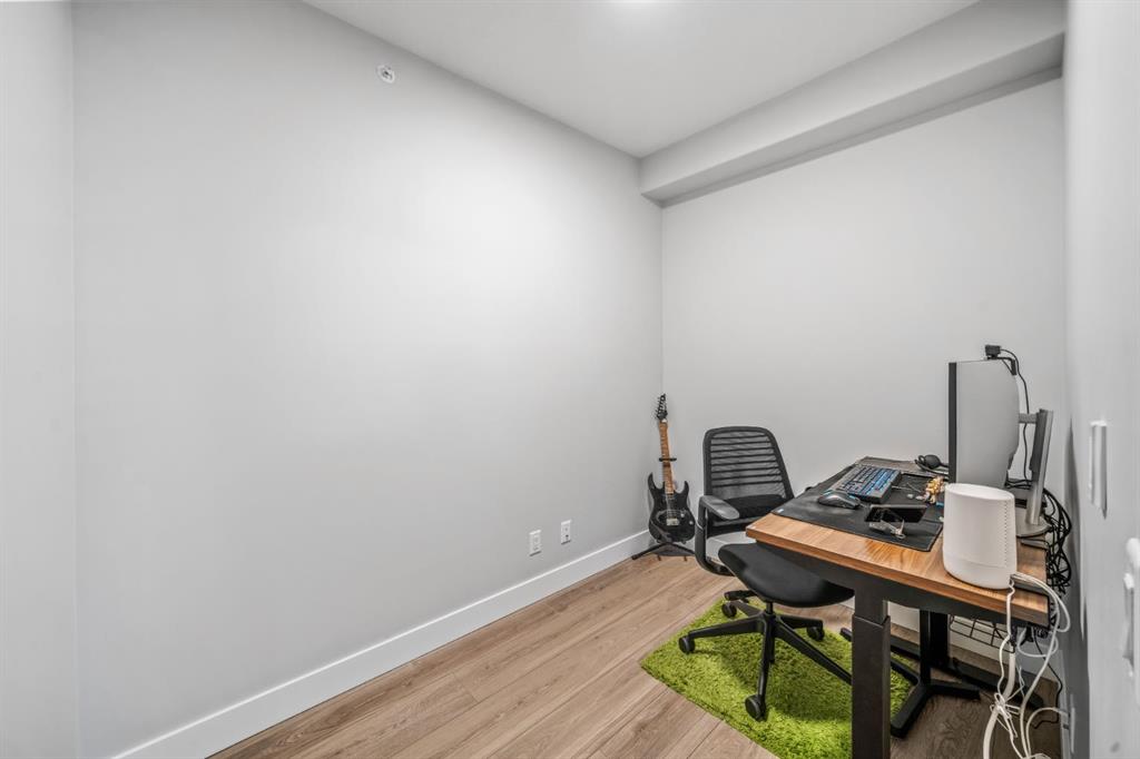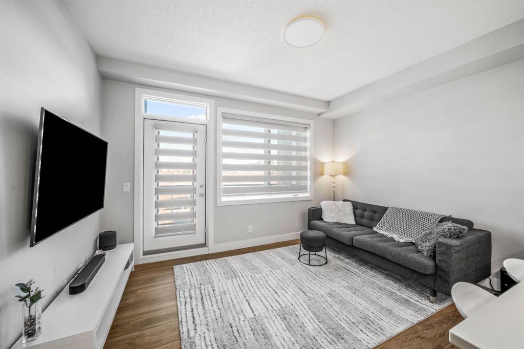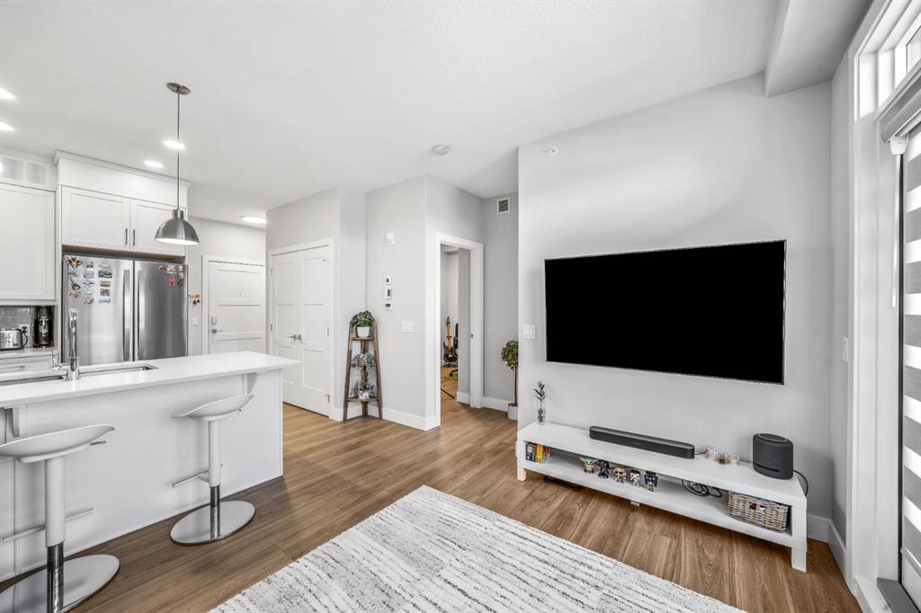 Welcome to this well maintained one bedroom plus den residence in the sought after 85th and Park building, completed in 2023 by Cove Properties. Set beside a protected ravine with walking paths bike trails, scenic pond, dog friendly, and beautiful Rocky Mountain views, this location offers a quiet setting just minutes to Aspen Landing mall, and a short drive to downtown Calgary. This efficient layout offers approximately 600 square feet with a bright open concept design. The kitchen features generous counte...