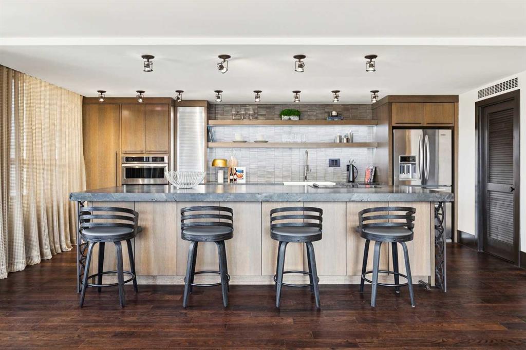 Welcome to Riverstone—one of Calgary’s most prestigious inner city residences, perfectly positioned in the heart of Mission and just steps from the Elbow River. This luxurious 1,572 sq. ft. SW corner unit has over $300,000 in high-end renovations, thoughtfully crafted by renowned interior designer Douglas Cridland. Showcasing a modern, open concept layout, the home is wrapped in floor to ceiling SW windows that bathe the living and dining areas in natural light while capturing sweeping southwest views. The...