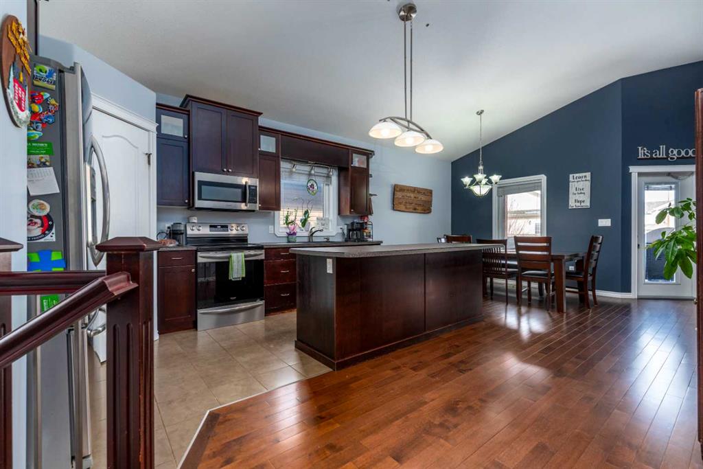 Welcome to this well-maintained 5-bedroom, 3-bathroom modified bi-level located in a quiet Parkview neighbourhood in Lloydminster, Alberta. Offering a functional and spacious layout, this home is perfect for families looking for comfort, quality, and room to grow. The main floor features beautiful hardwood flooring, an open-concept living space, and plenty of natural light throughout. The kitchen offers ample cabinetry and flows seamlessly into the dining and living areas—ideal for both everyday living and ...