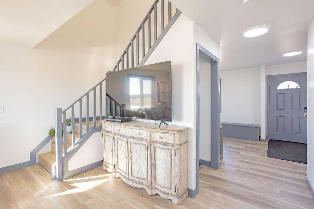 Escape to the perfect blend of privacy, space, and convenience with this beautifully appointed two-storey home set on 2.12 acres just minutes from Wainwright. Tucked away along a private driveway and surrounded by mature trees—including an array of fruit trees—this property offers a peaceful, nature-filled setting ideal for those seeking a quieter lifestyle without sacrificing access to town amenities. The yard is thoughtfully developed with both relaxation and functionality in mind. Enjoy outdoor living o...