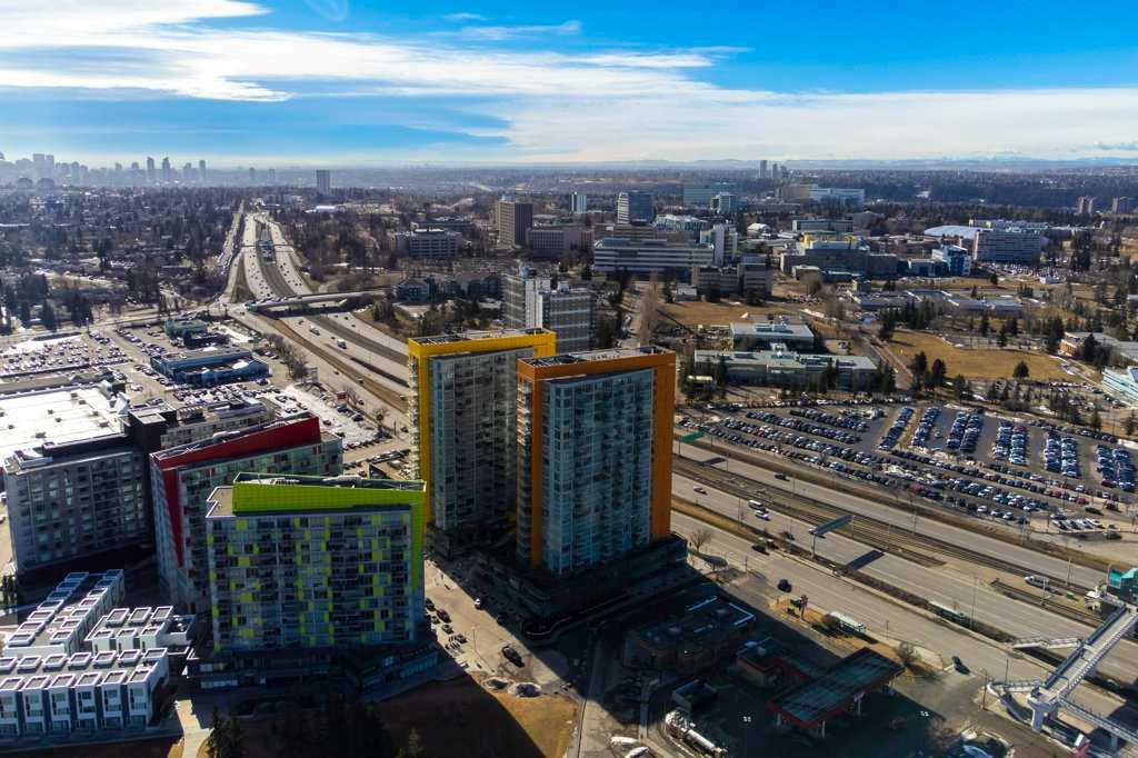 Don't miss a RARE OPPORTUNITY to own this bright and inviting 2-bedroom, 1-bath corner unit with sunny south and west exposures! This well-designed home features laminate flooring, granite countertops, A/C and an open layout filled with natural light. Step onto your private deck to enjoy both city lights and Rocky Mountain views on Calgary's many blue-sky days. Both bedrooms feature large windows and the 4 piece bath between them has ample room for extra storage. You'll love the convenience of newer, stacke...