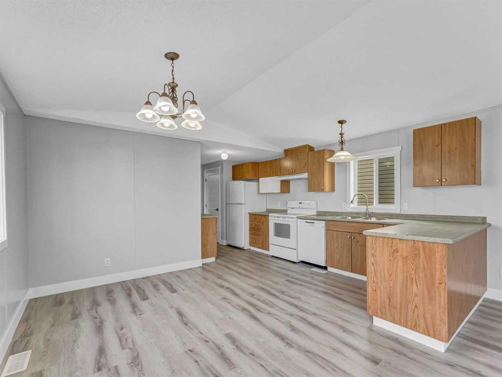 This lovely mobile home is ready for you! Fresh and clean with 3 bedrooms and 2 bathrooms, all you have to do is bring your furniture! There is fresh paint and vinyl plank flooring throughout, new windows and brand new shingles! The large front deck will make the perfect place to enjoy your morning coffee and the double asphalt driveway provides good parking. This home sits on a large corner lot in the Sunnylea Mobile Home Park, Wildrose Garden Estates with lot rent price applicable.