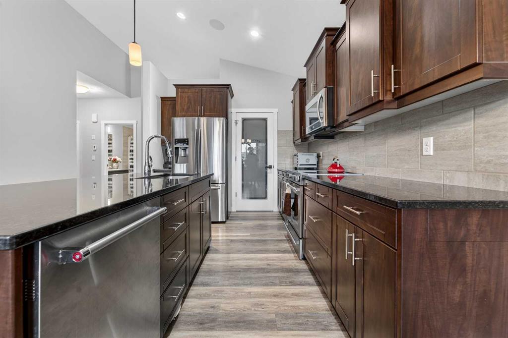 This fully developed 1,800 square foot modified bi level offers a thoughtfully designed layout with five bedrooms and excellent flexibility for families, multi generational living, or future rental income. Spacious, well laid out, and filled with natural light, this home balances everyday comfort with smart functionality. Vaulted ceilings and an open concept main floor create an inviting sense of space as soon as you step inside. The living room is warm and welcoming, centered around a gas fireplace with a ...