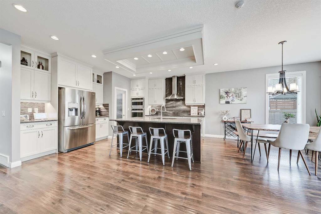 GORGEOUS ESTATE HOME | BACKING GREENSPACE & PATHWAY | OVERSIZED GARAGE | WALKABLE TO AMENITIES! Welcome to this beautifully cared for and extensively upgraded 4-bedroom home in one of Ravenwood's most connected locations. Here, you are literally steps from everything that makes the community special, including 2 schools just down the pathway behind the house, playgrounds, sports fields, outdoor rink, the pump track, pond and pathway system, Amphitheatre Park and the shops, services and restaurants at King...
