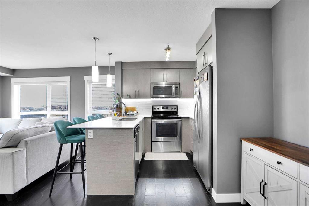 Welcome to this stunning top floor corner unit, offering exceptional privacy, designer finishes, and two titled parking stalls; Flooded with natural light from expansive windows on two sides, this home features an open and airy layout that seamlessly connects the living and dining areas. Step out onto the private balcony to enjoy beautiful views perfect for summer BBQs or unwinding at the end of the day. The chef inspired kitchen is a true showpiece, showcasing ceiling height cabinetry, quartz countertops w...