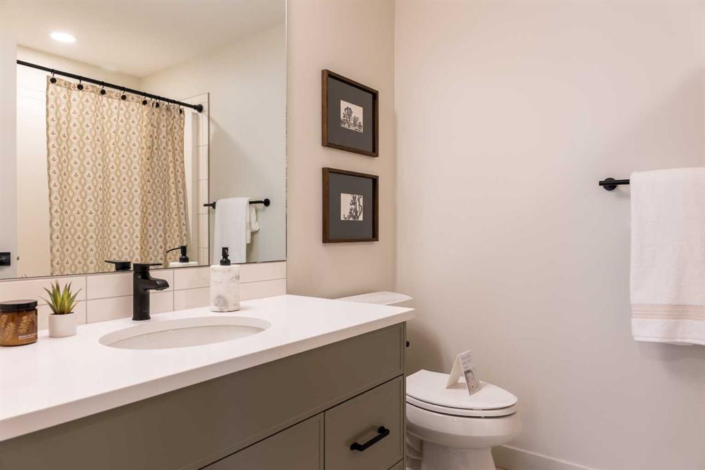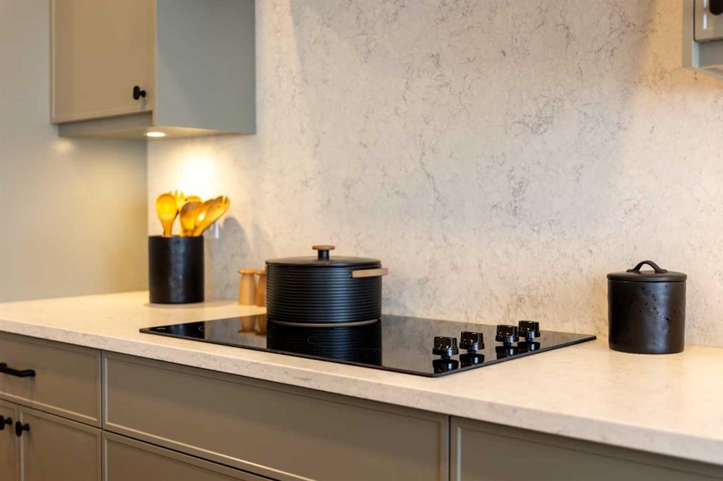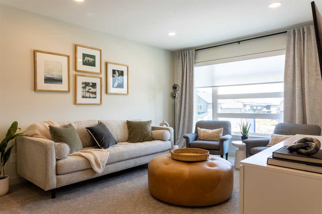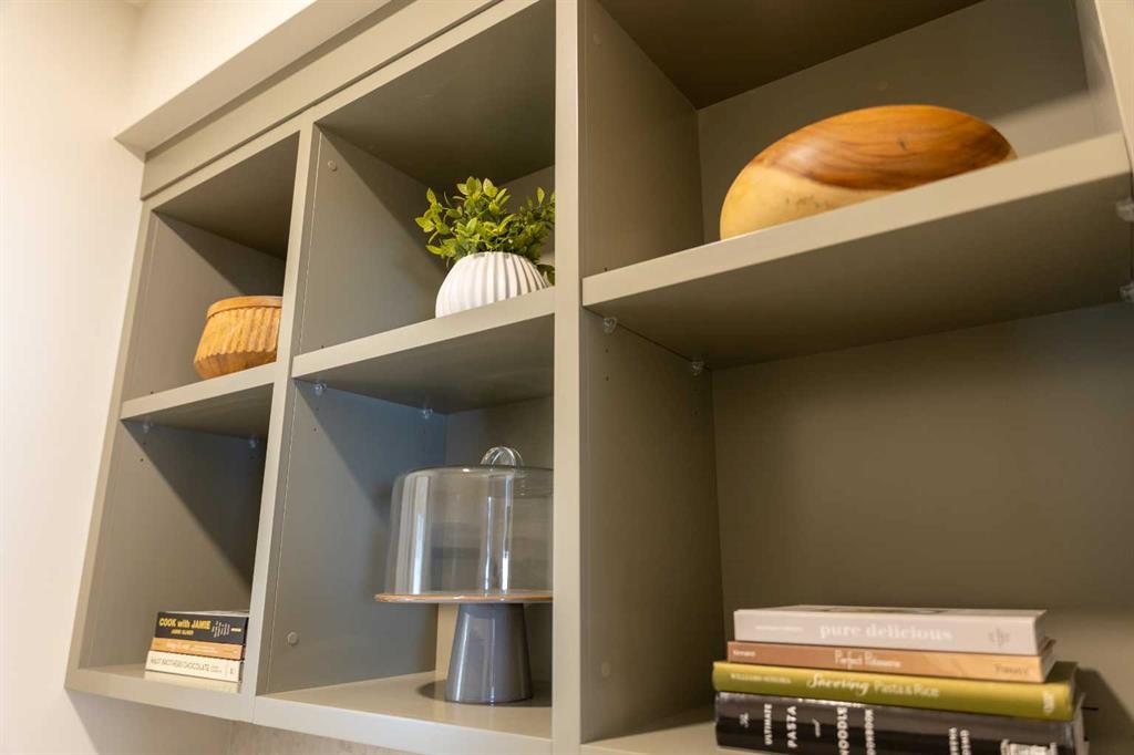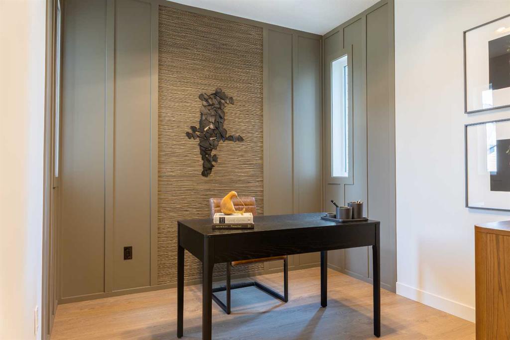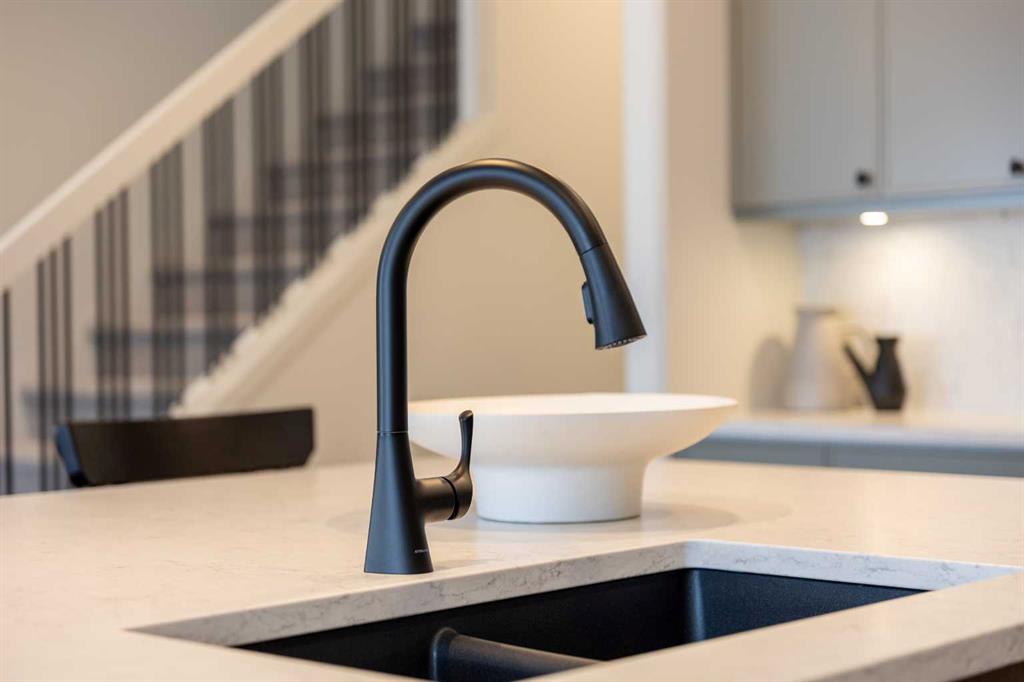 Showhome upgrades paired with modern elegance have created this one of a kind, show stopping home that you simply NEED to see. From the moment you step through the front door, the warm organic details will instantly make you feel at home. The main floor features a spacious foyer with closet, and then in to your large main living area where you will immediately fall in love with this kitchen. Two tone cabinets with a wood island, hood fan with wood detail, full height cabinet and open shelving detail, quartz...
