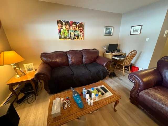 Excellent opportunity for first-time buyers or investors. This very clean 2-bedroom, 1-bath unit is ideally located and move-in ready. It features newer carpet, low-maintenance laminate flooring, in-suite laundry (one of very few in this complex), and additional storage. The spacious L-shaped living and dining area flows into a functional galley kitchen with ample prep space. With all utilities included in the condo fees, it offers convenience for both homeowners and investors. The storage area is large eno...
