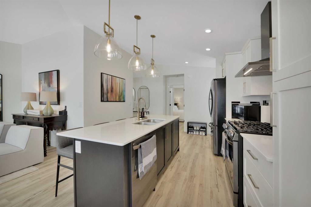 Step into this beautifully designed 940 sq ft BUNGALOW offering stylish finishes, a functional layout, and the convenience of main floor living. Built in 2022, this home blends modern comfort with low maintenance living — perfect for downsizers & right sizers. The main floor features VAULTED CEILINGS, LUXURY VINYL PLANK flooring throughout, and a bright open concept living space centered around a sleek ELECTRIC FIREPLACE. The Kitchen impresses with QUARTZ COUNTERTOPS, a built in pantry, UPGRADED APPLIANCES ...