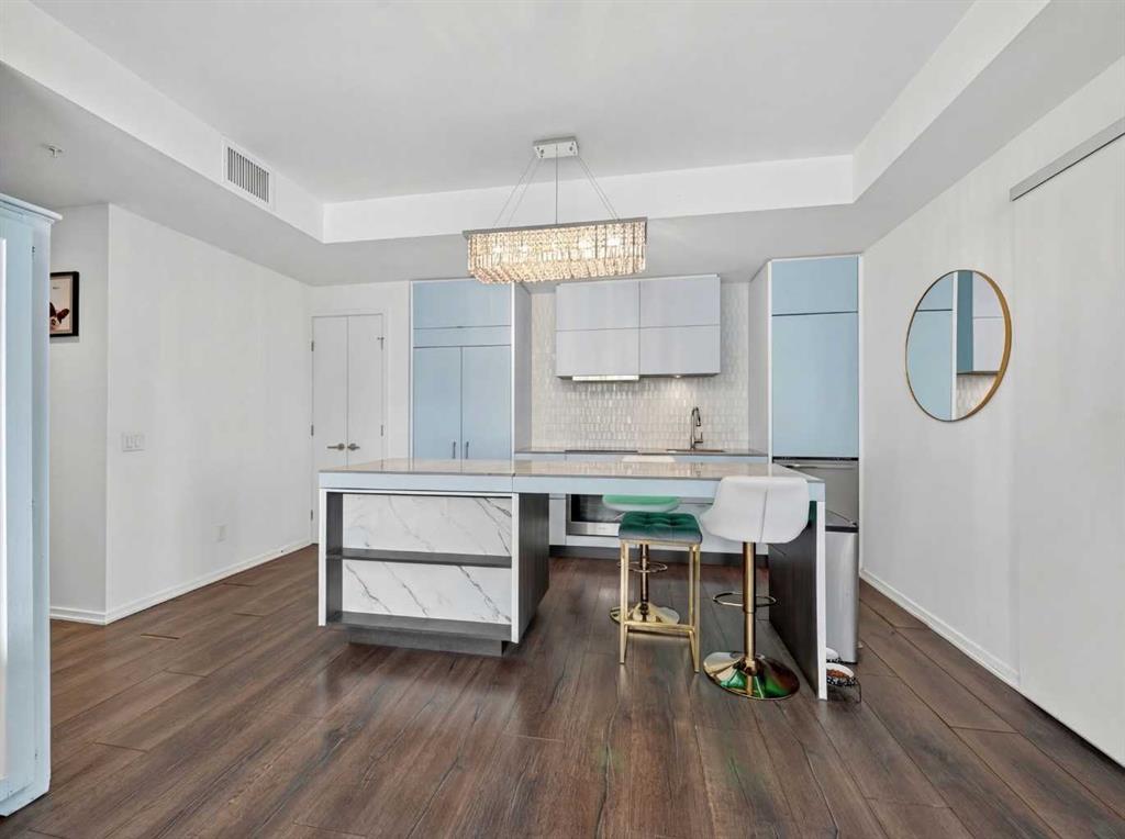 This is downtown living at its best. Welcome to this stunning corner unit in The Verve, located in the heart of East Village — one of Calgary’s most vibrant and walkable communities. This modern 2-bedroom, 2-bathroom condo features floor-to-ceiling windows with panoramic west-facing views, an open-concept layout flooded with natural light, and a sleek kitchen complete with quartz countertops, built-in oven, electric cooktop, and fully integrated appliances. The bright corner primary bedroom offers a stylish...