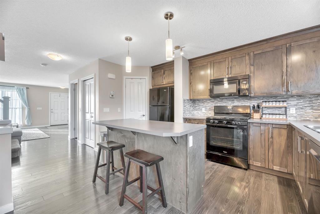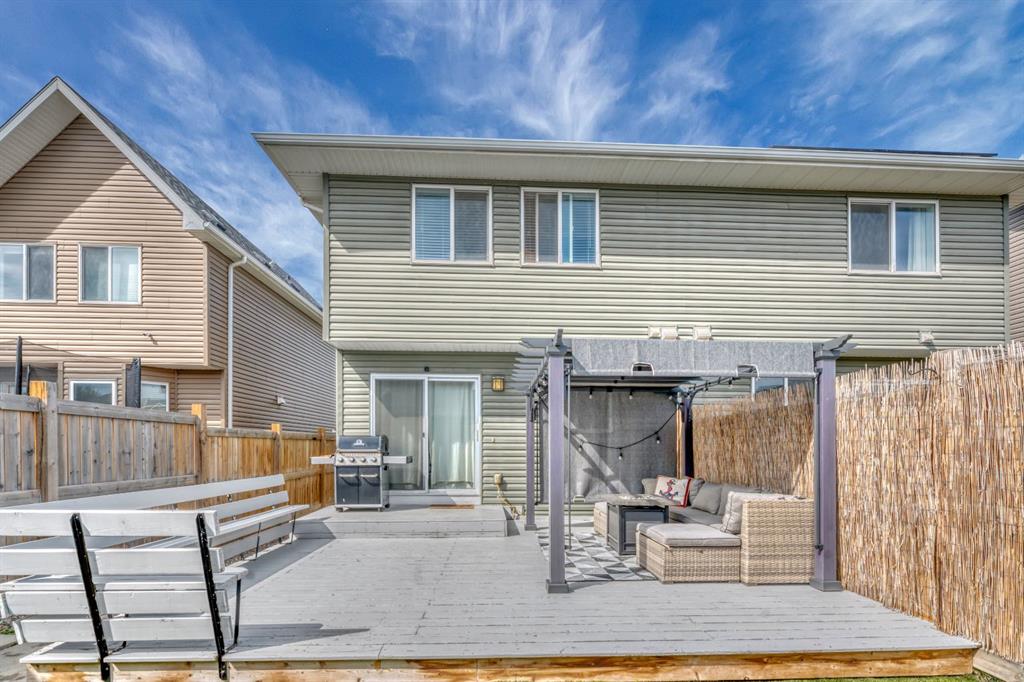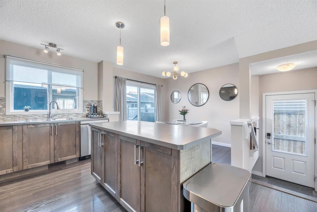 Welcome to this bright and beautifully maintained 1,411 sq. ft. semi-detached home in the highly sought-after lake community of Auburn Bay! Offering a fully finished basement, an oversized double-detached garage, and exceptional walkability, this home delivers incredible value in one of Calgary’s favourite four-season lake communities. The main floor is warm and inviting, featuring a cozy gas fireplace, large windows, and patio doors that flood the space with natural light. The kitchen offers rich wood cabi...