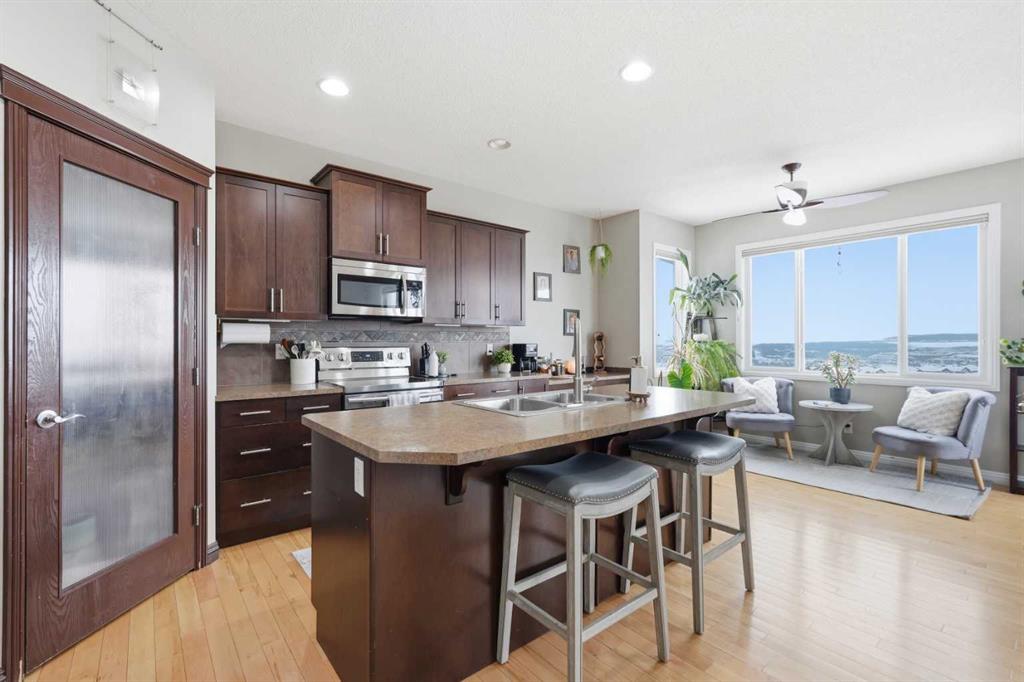Properties like this don’t come along often. Situated on a quiet street in Sunset Ridge, this exceptional home rests on a sprawling PIE-SHAPED lot BACKING ONTO PATHWAYS AND GREEN SPACE, with UNOBSTRUCTED VIEWS of the Rocky Mountains. Inside, you are welcomed by a bright foyer with vaulted ceilings that leads into the open-concept kitchen, living, and dining area. This Jayman-built home features hardwood and tile flooring, maple cabinetry, upgraded appliances, a corner pantry, and a kitchen island, perfect f...